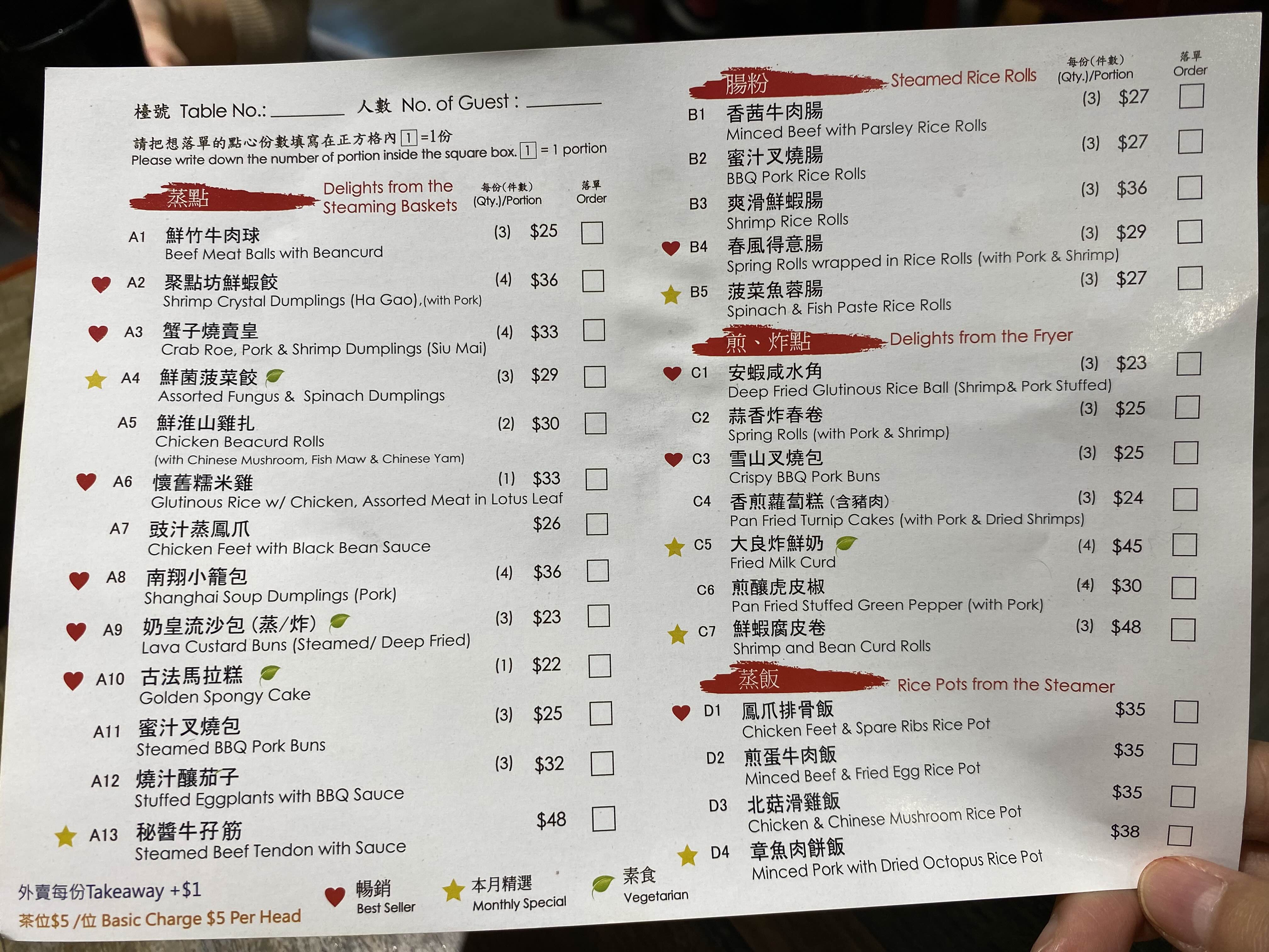 딤섬스퀘어의 메뉴판이자 주문서.