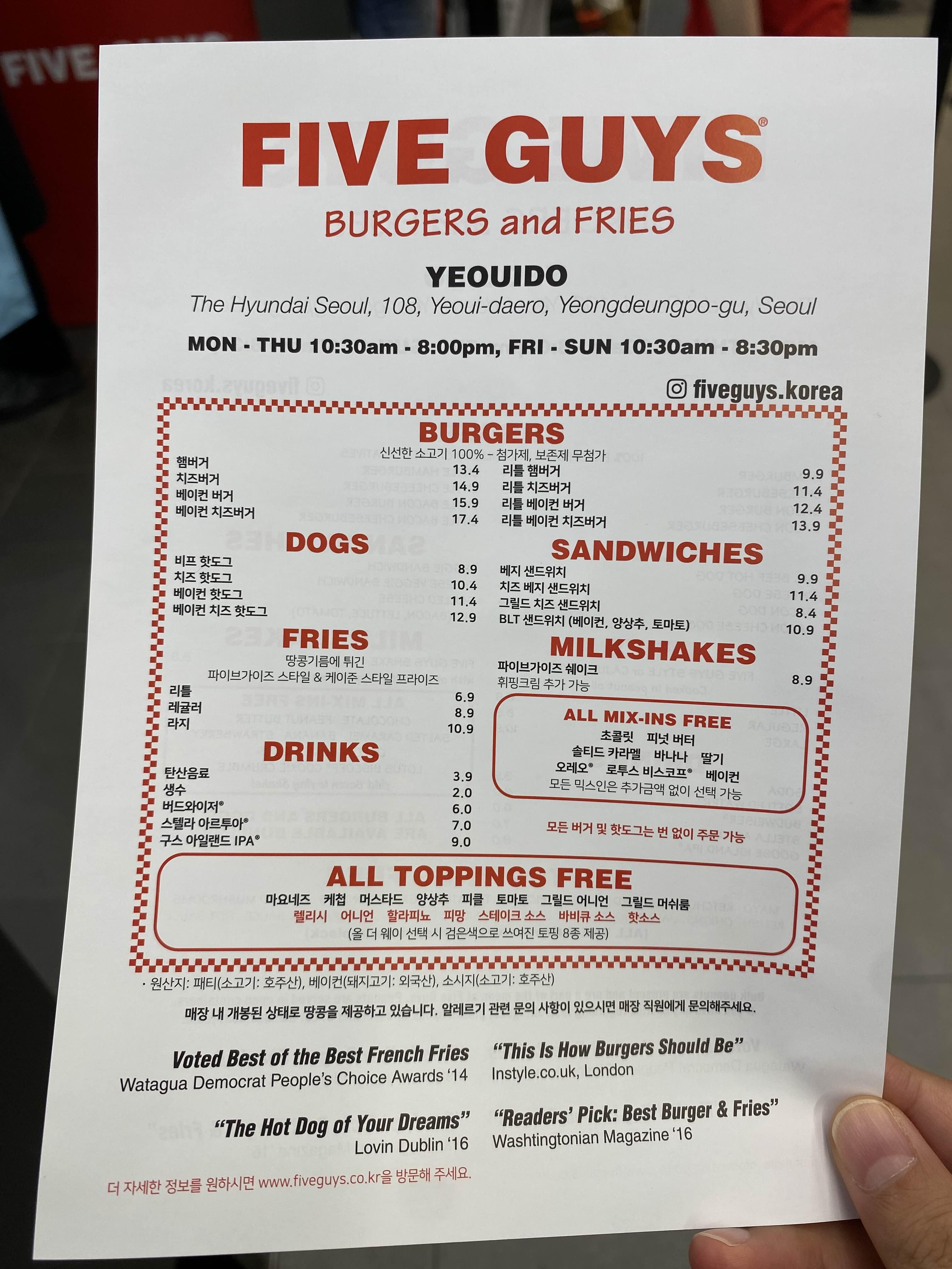 파이브가이즈 (Five Guys) 여의도