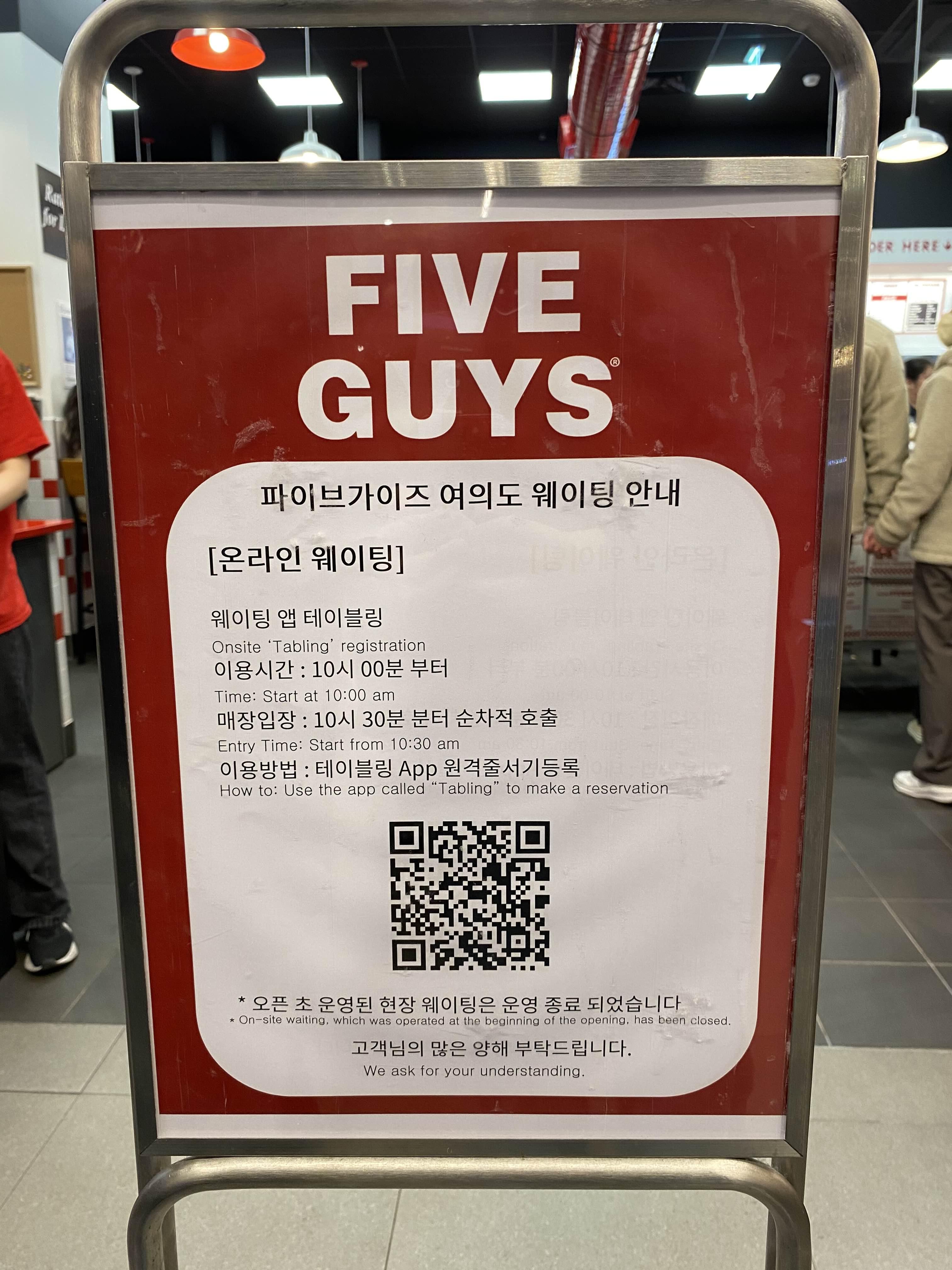 [강남] 파이브가이즈 :: 오픈런도 늦다! 주말 테이블링 웨이팅 후기