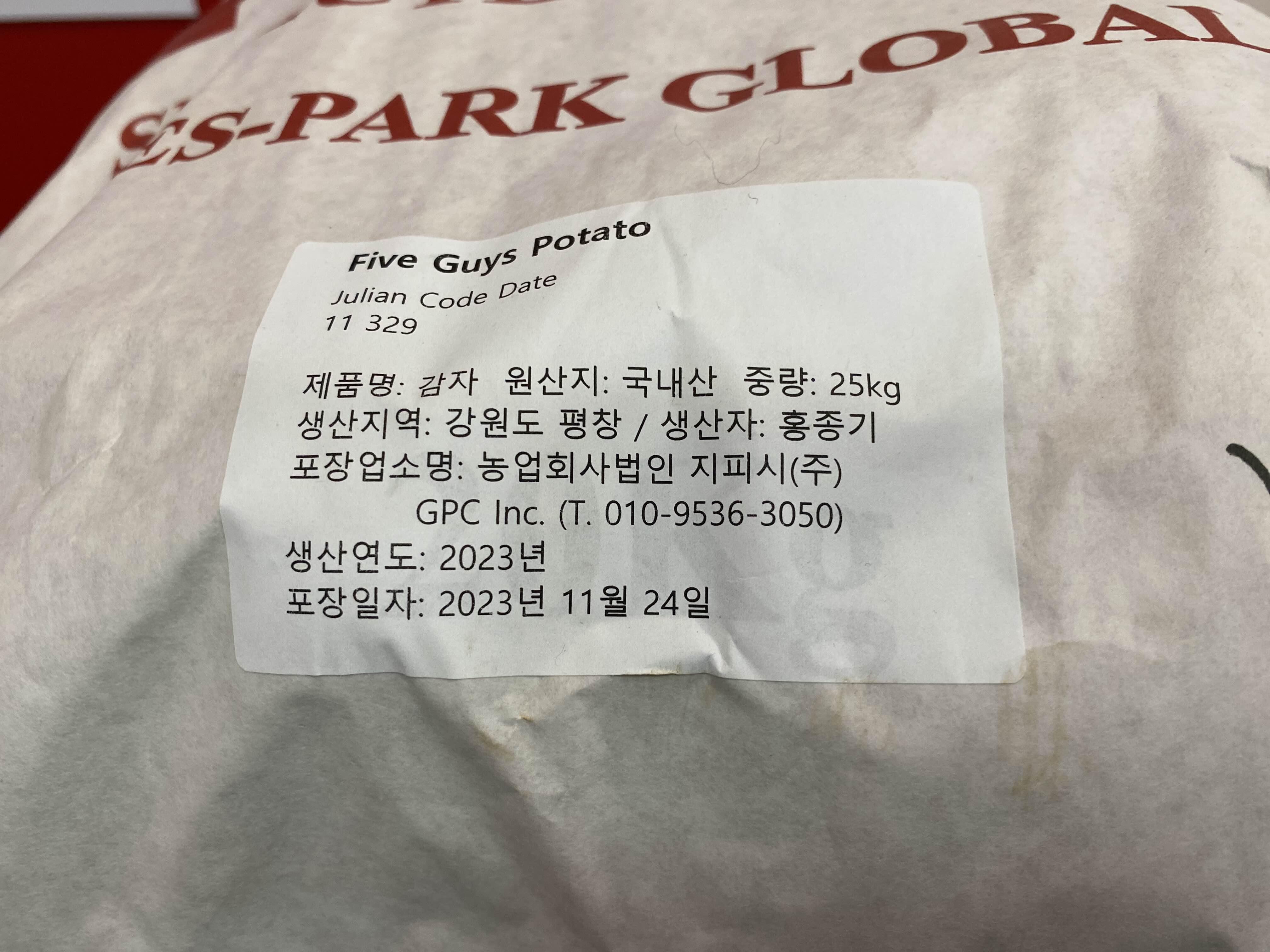 감자 포대마다 생산 지역에 생산자 명까지