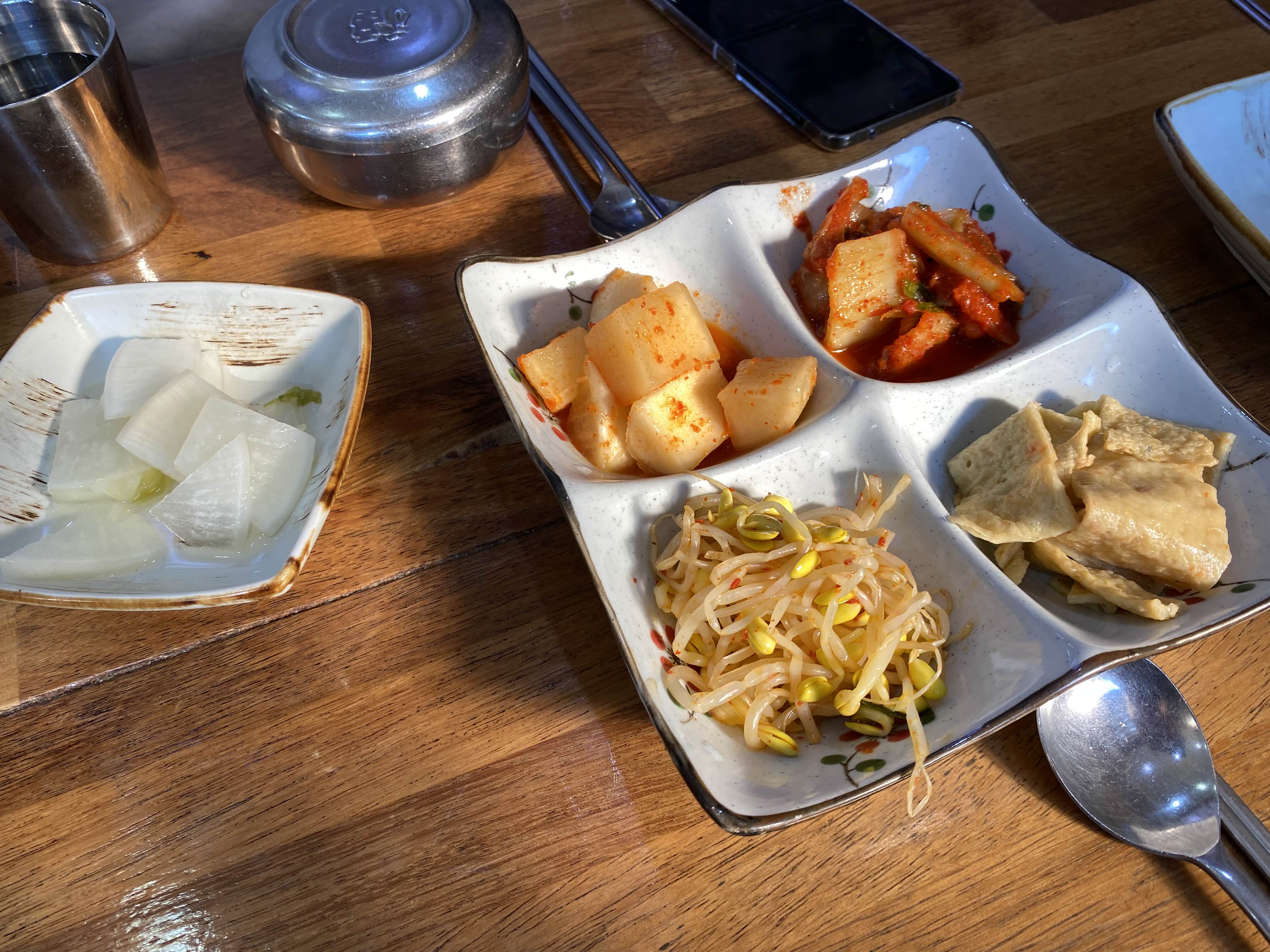 밥 메뉴만 주문하면 오른쪽의 4개 밑반찬이 나오고