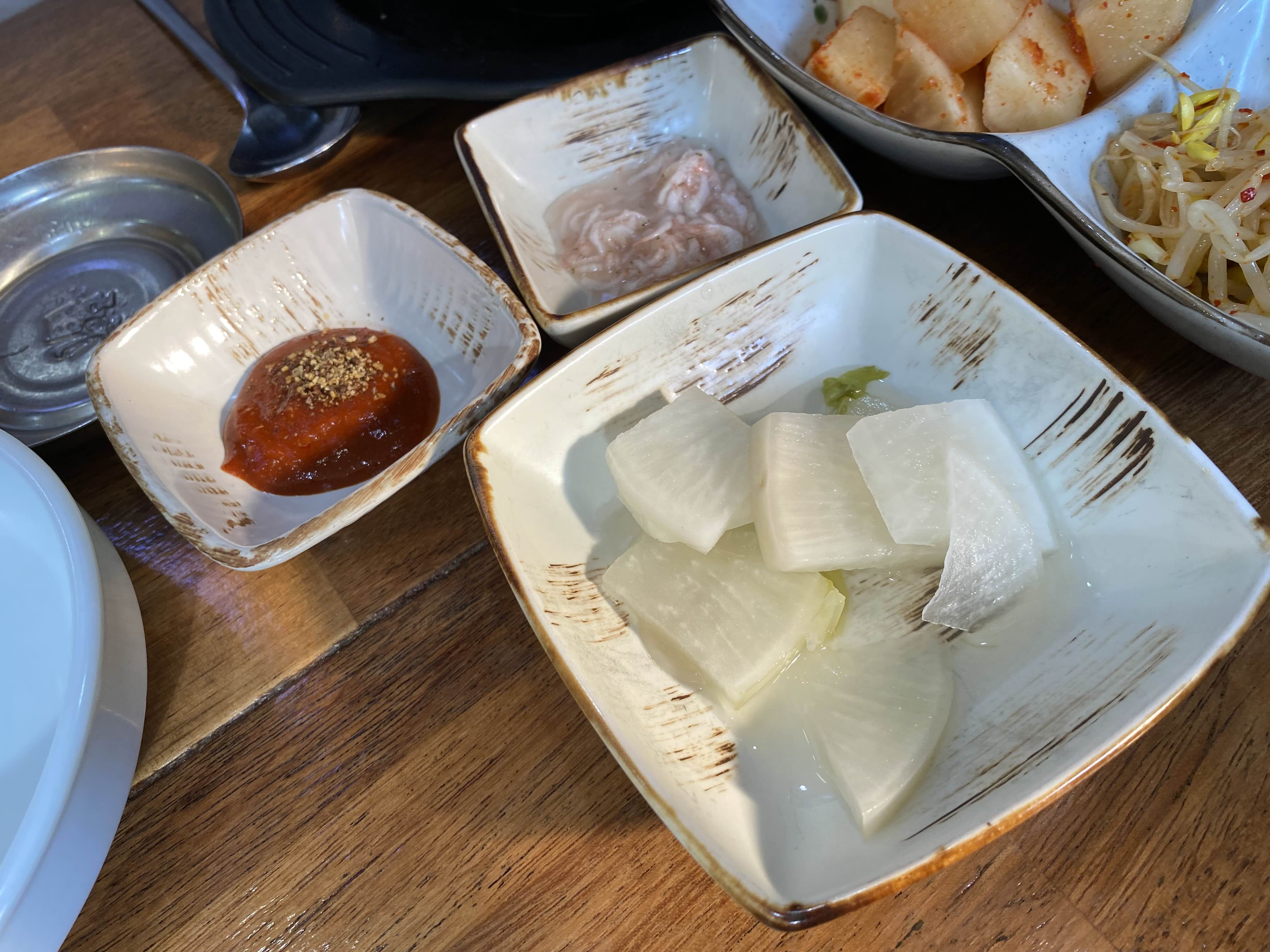 양념장, 새우젓, 무김치 세트.