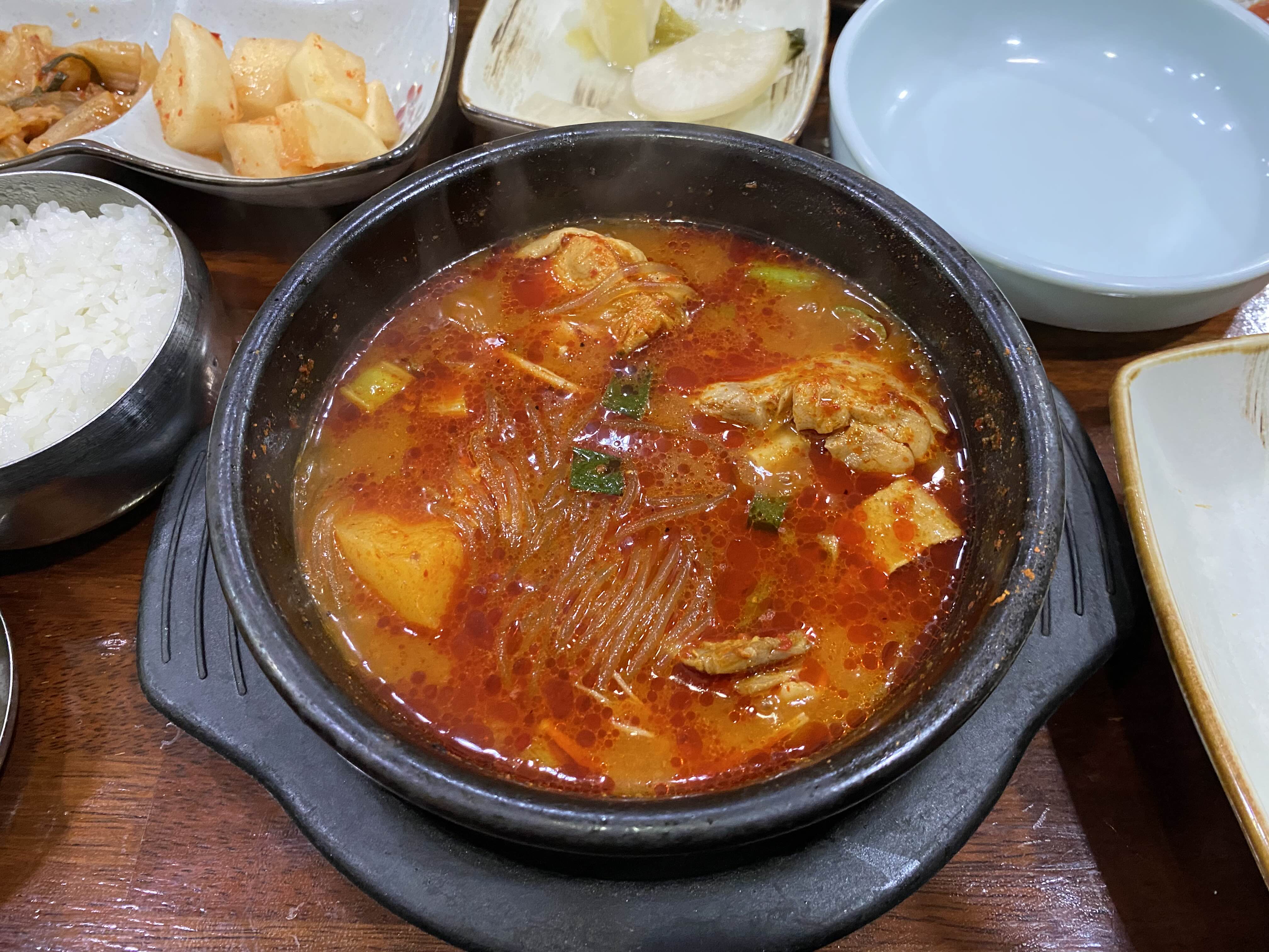 매콤한 국물이 일품인 옛날집의 뚝도리탕.