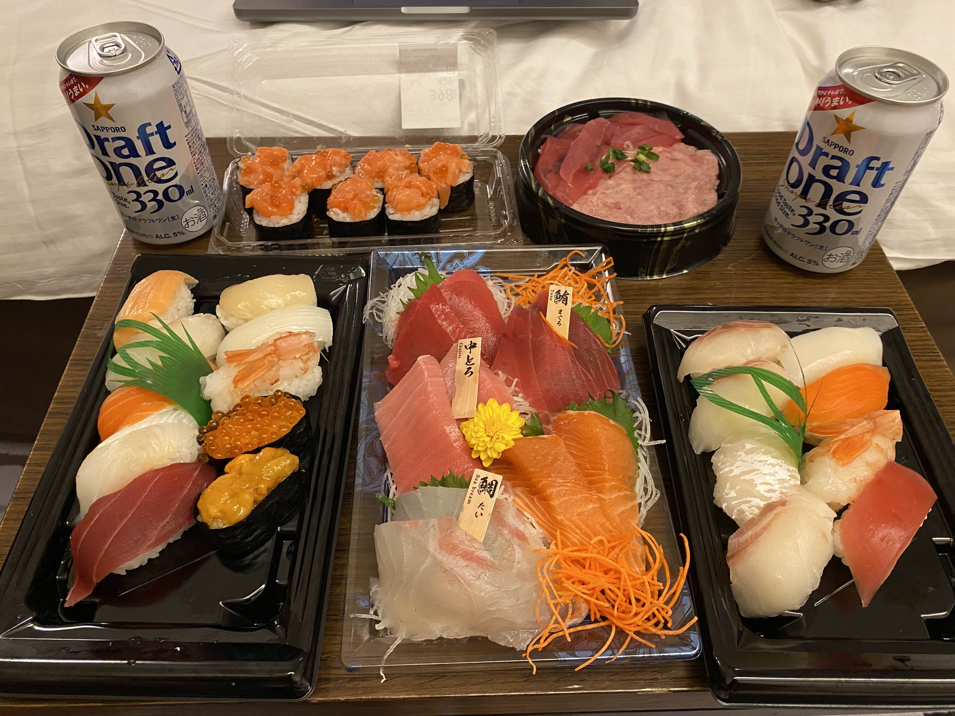 그냥 마트에서 각자 원하는 회랑 초밥을 골라왔는데