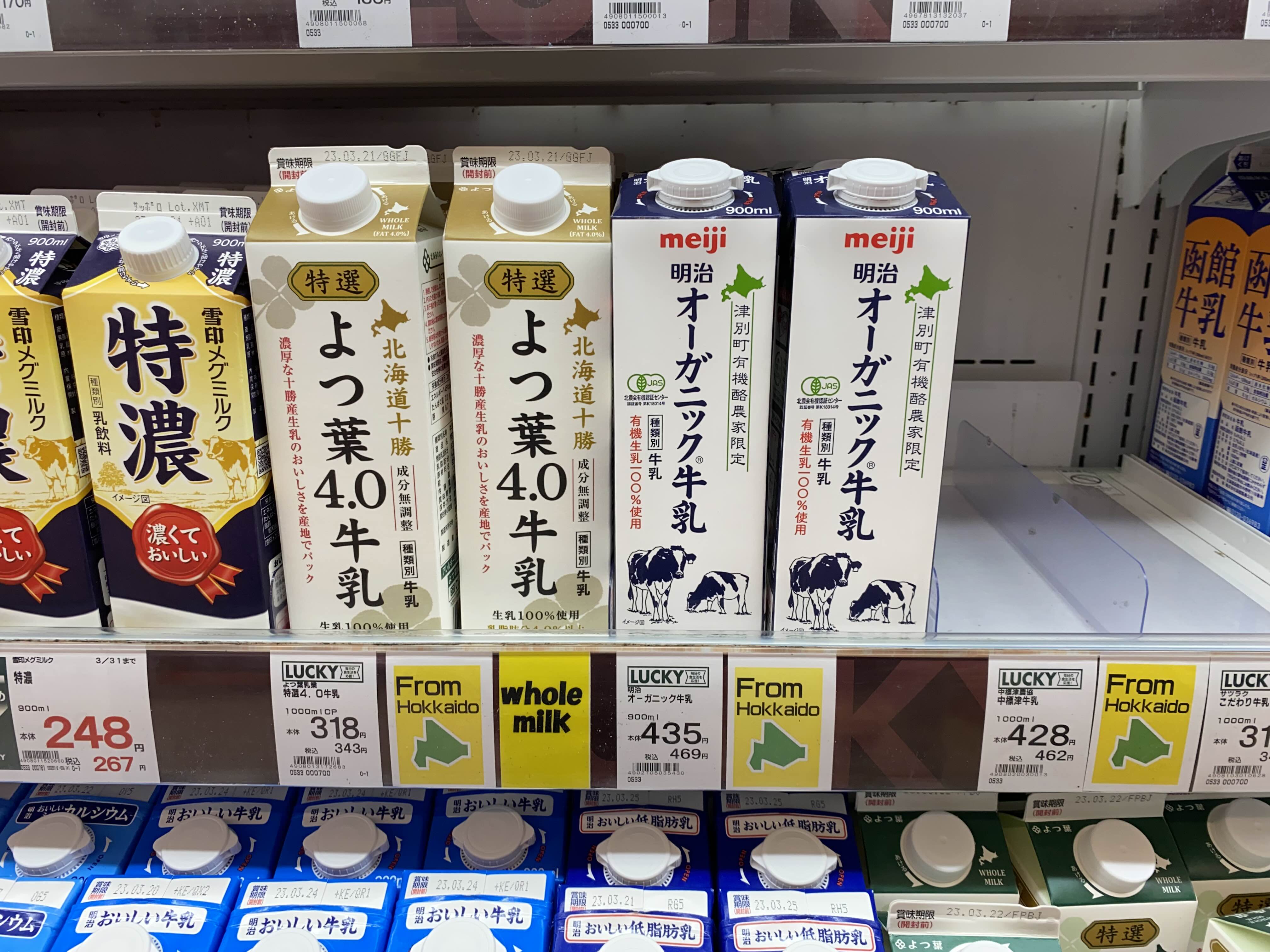 홋카이도산 우유 종류도 굉장히 다양하다.