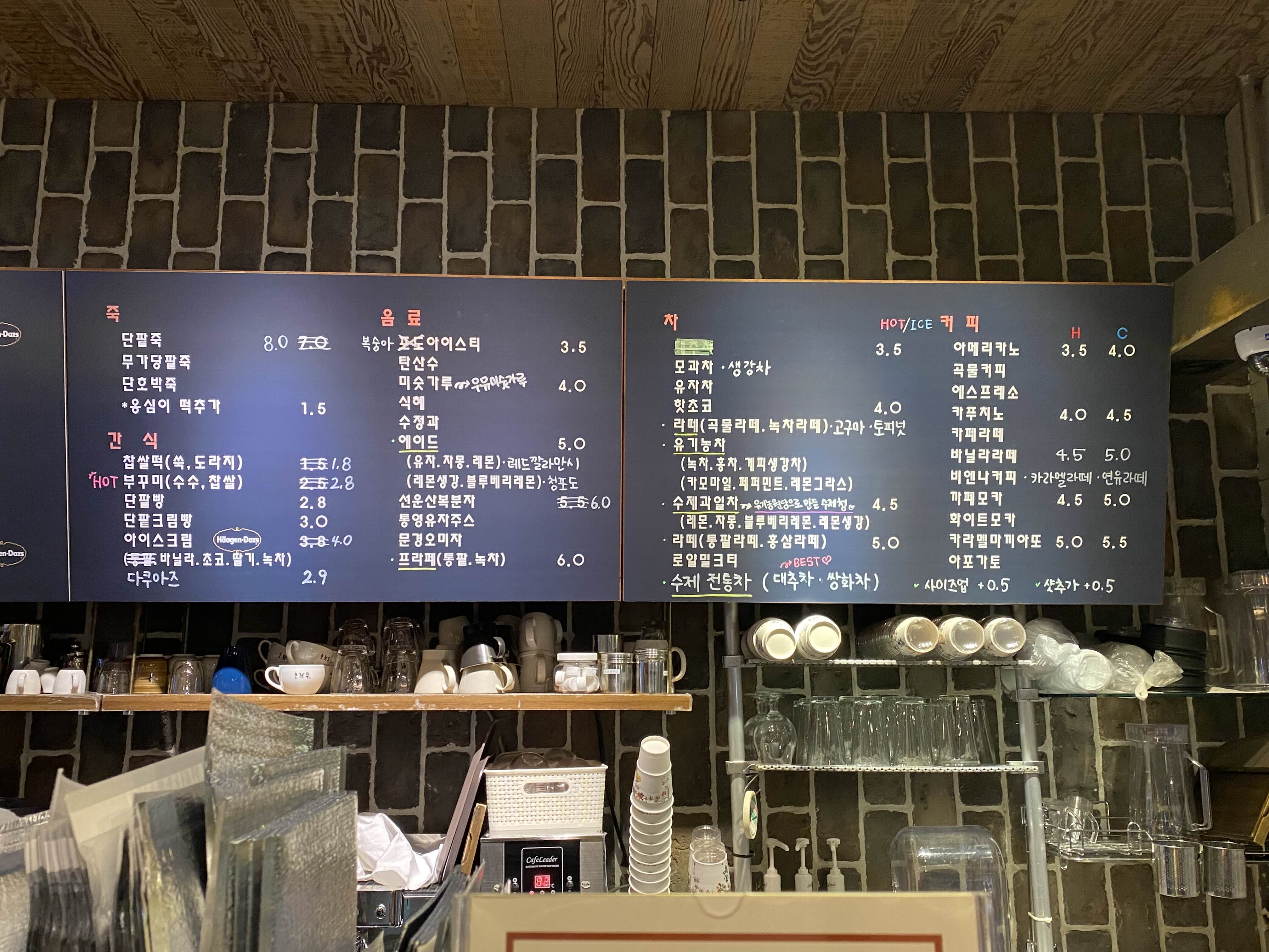 커피, 차, 음료, 죽까지 다양한 메뉴가 있다.