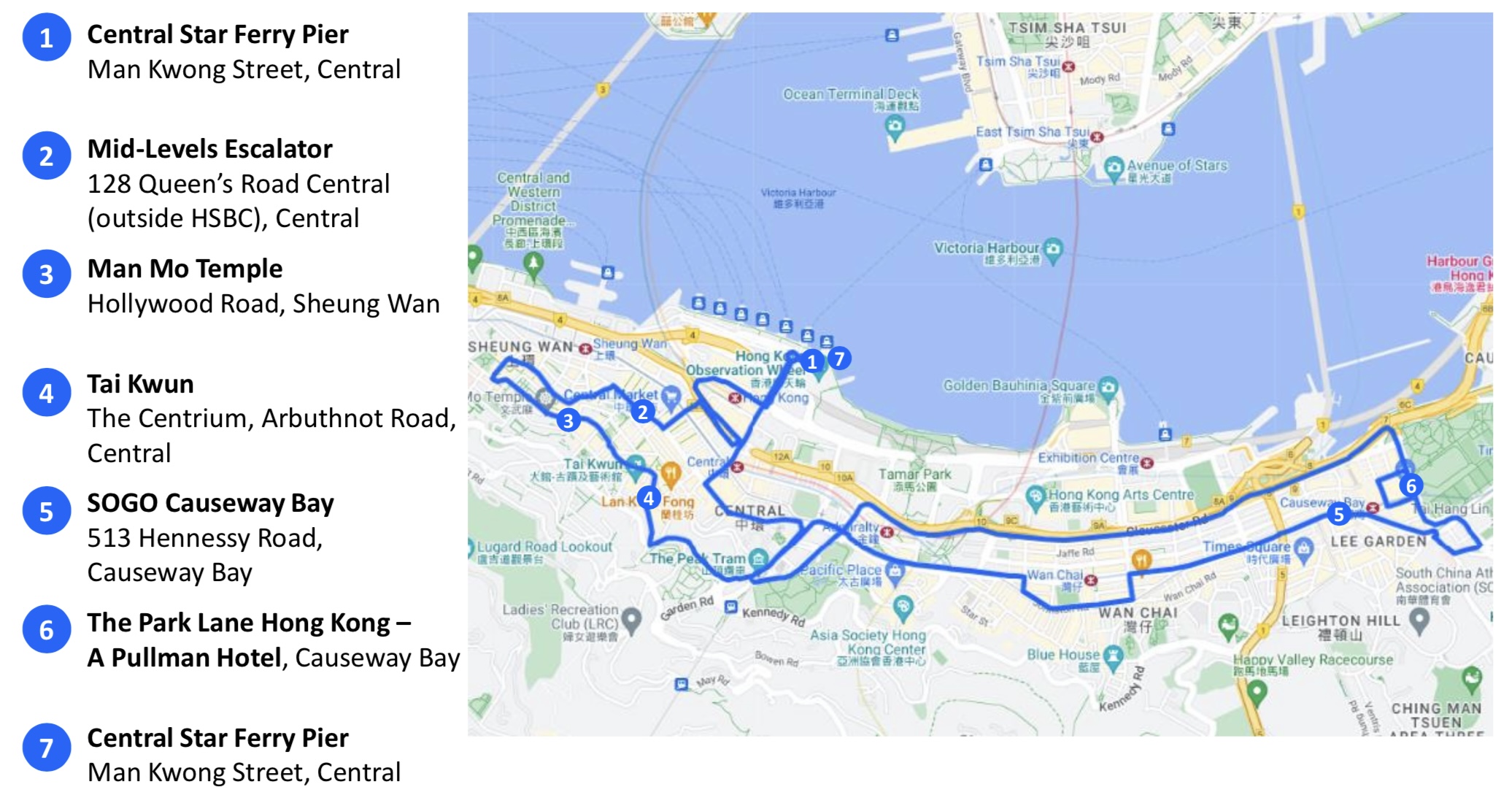 ✔️ Hong Kong Island Night Tour 경로