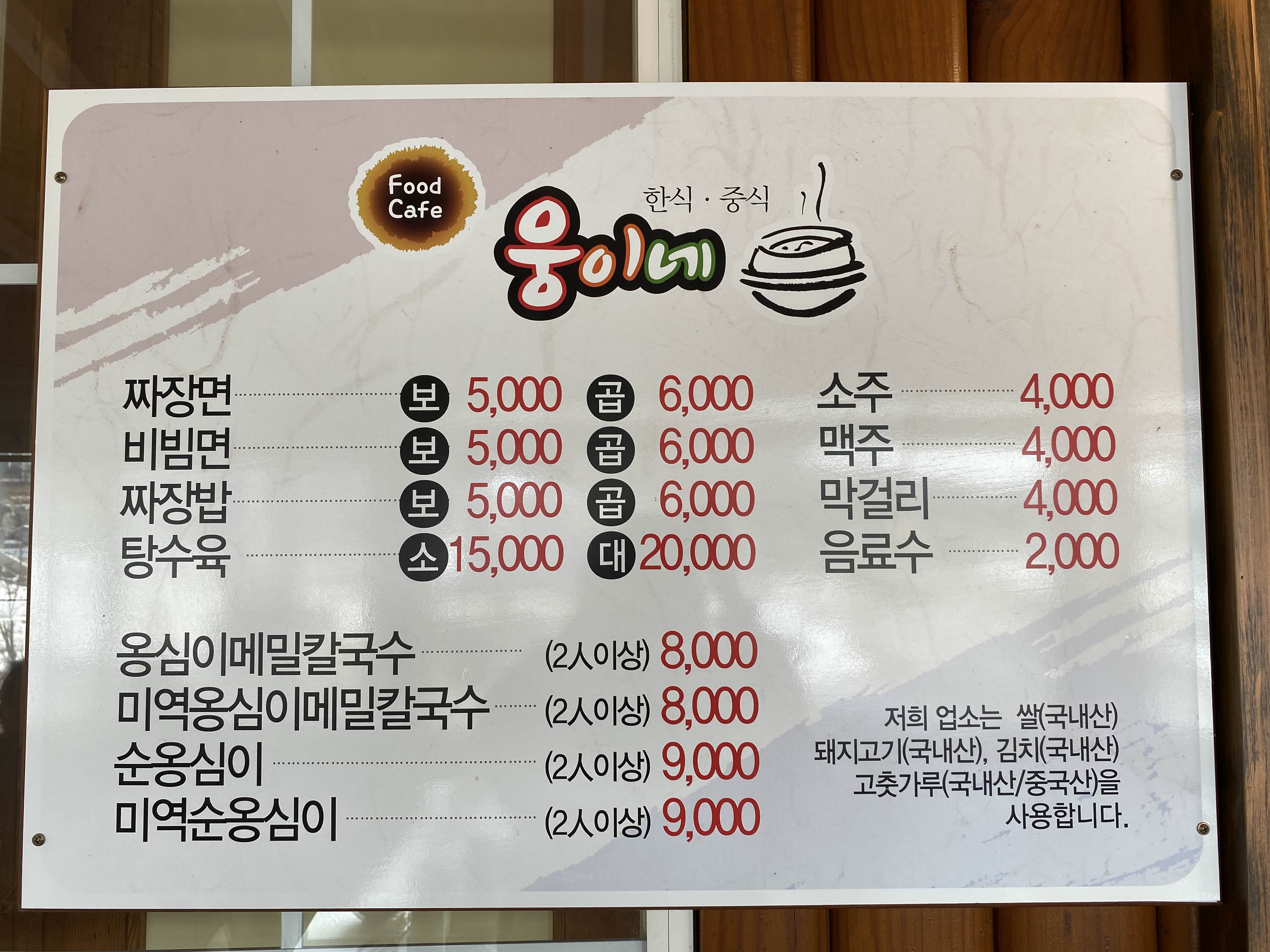 웅이네 메뉴판.