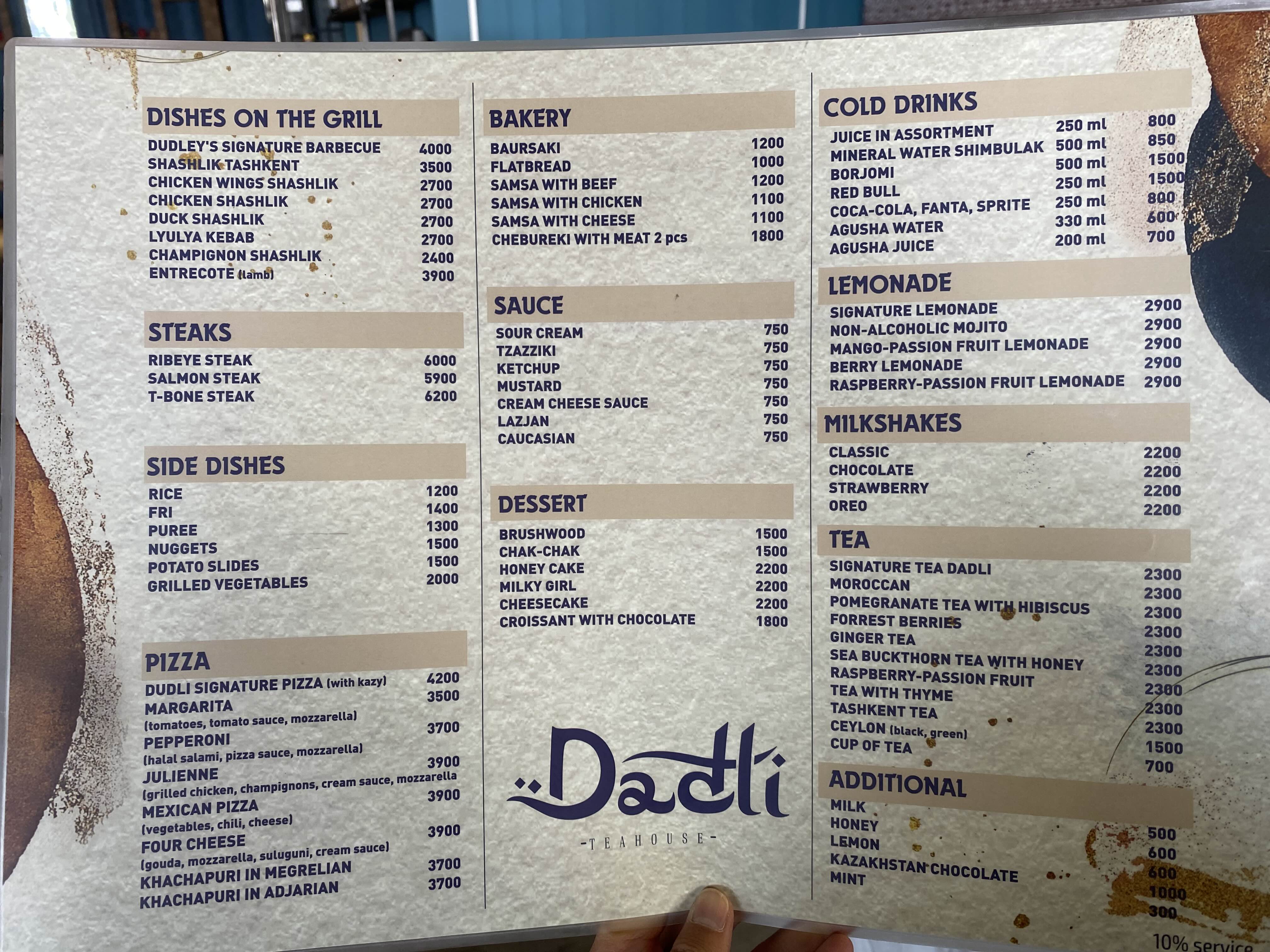 Dadli 메뉴판.