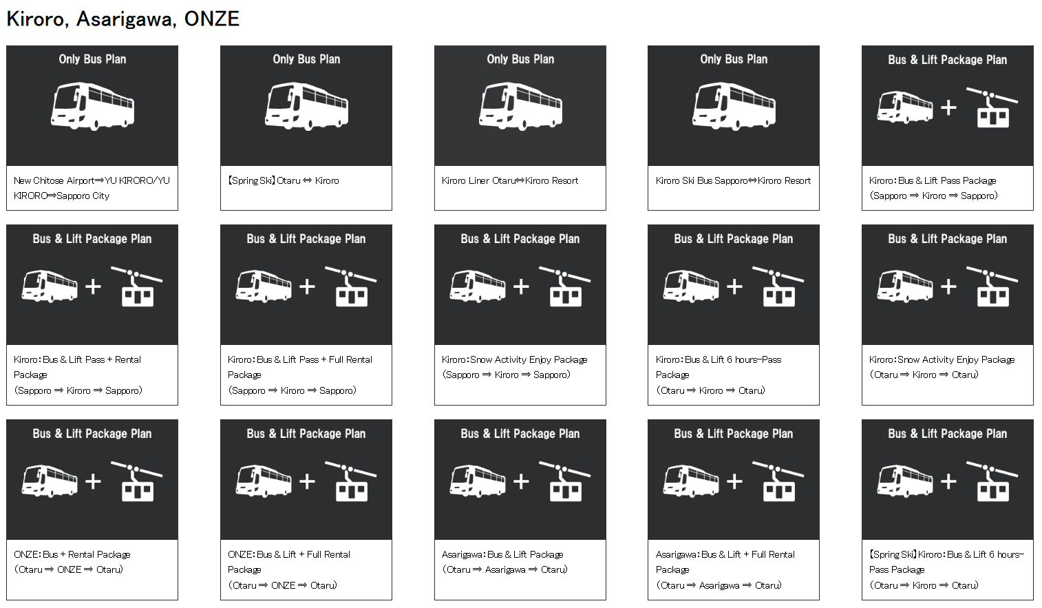 버스, 버스&리프트권, 버스&리프트권&렌탈 등