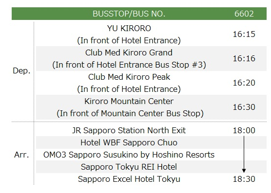 ✔️ 삿포로 → 키로로 버스 시간표