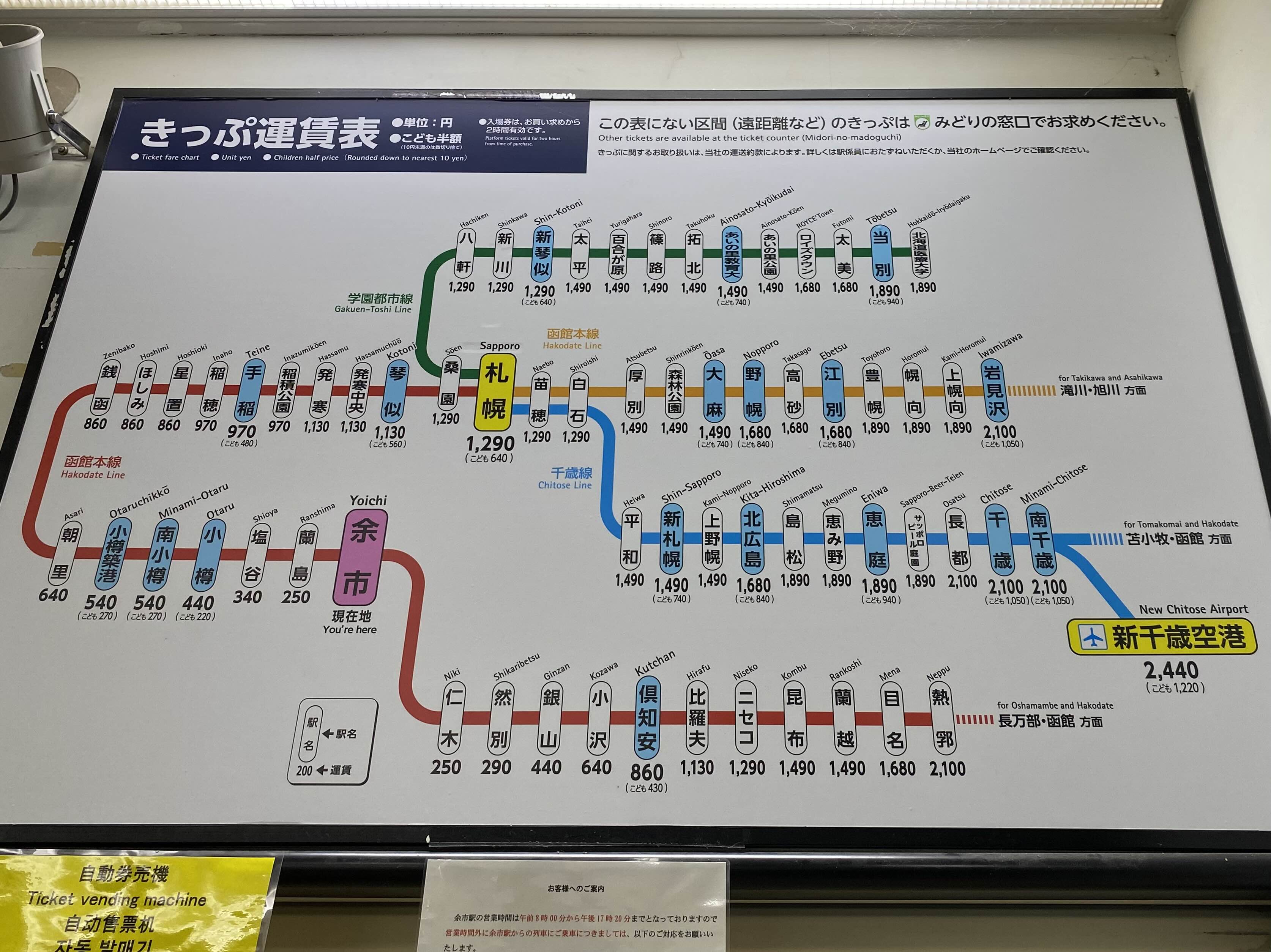 오타루 역에서 표를 보여준 뒤 기차값을 지불했다.
