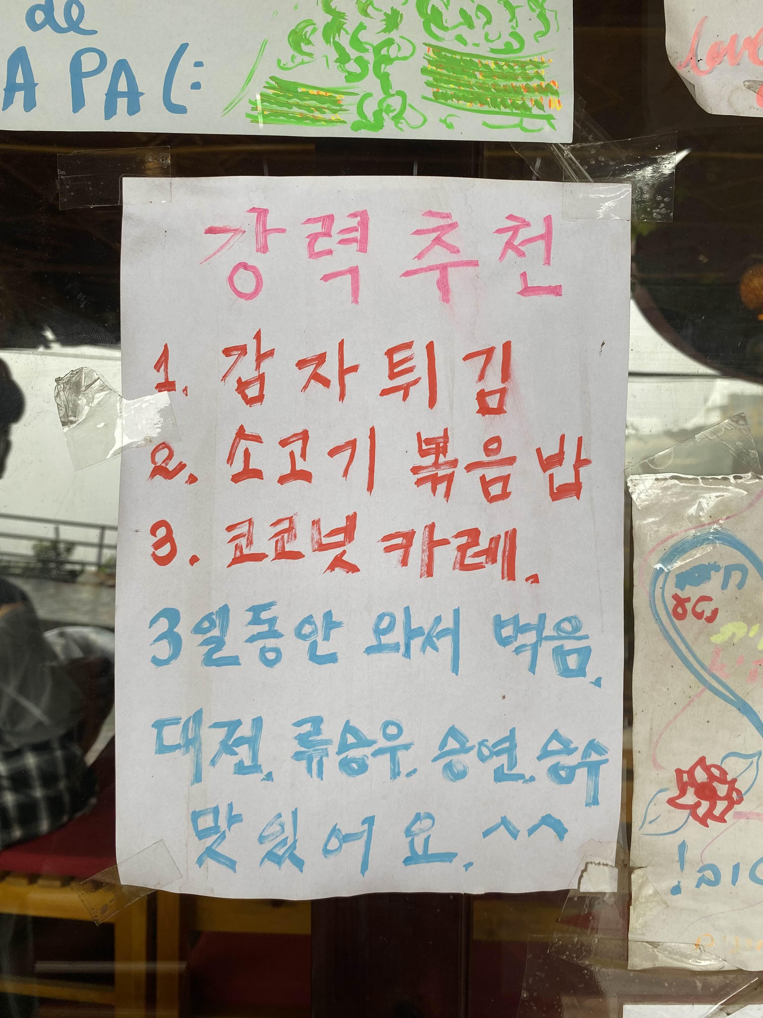 한국 손님들의 메뉴 추천글이 꽤 많이 붙어있었다.