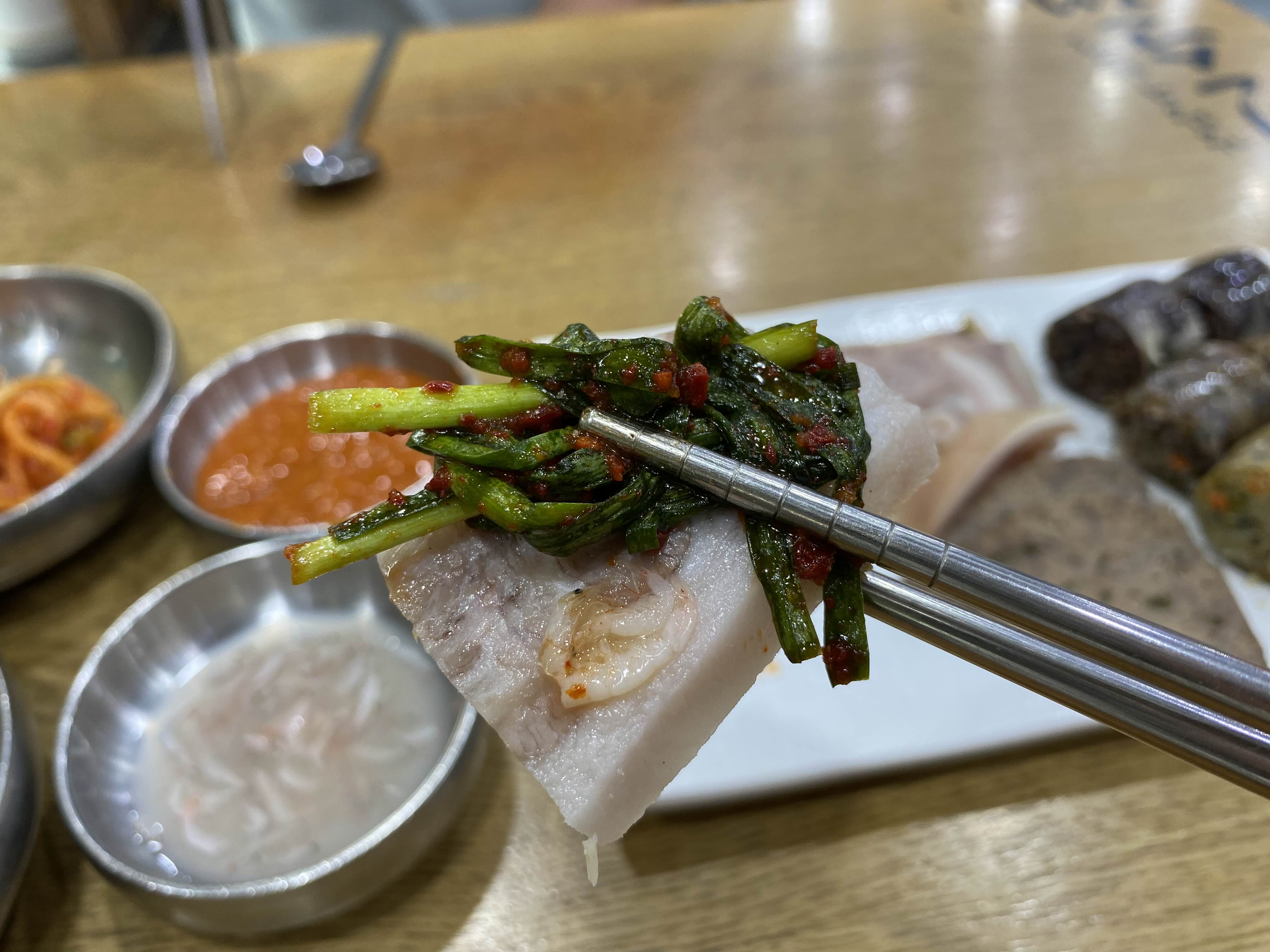 부드러운 수육에 새우젓 살짝 올리고