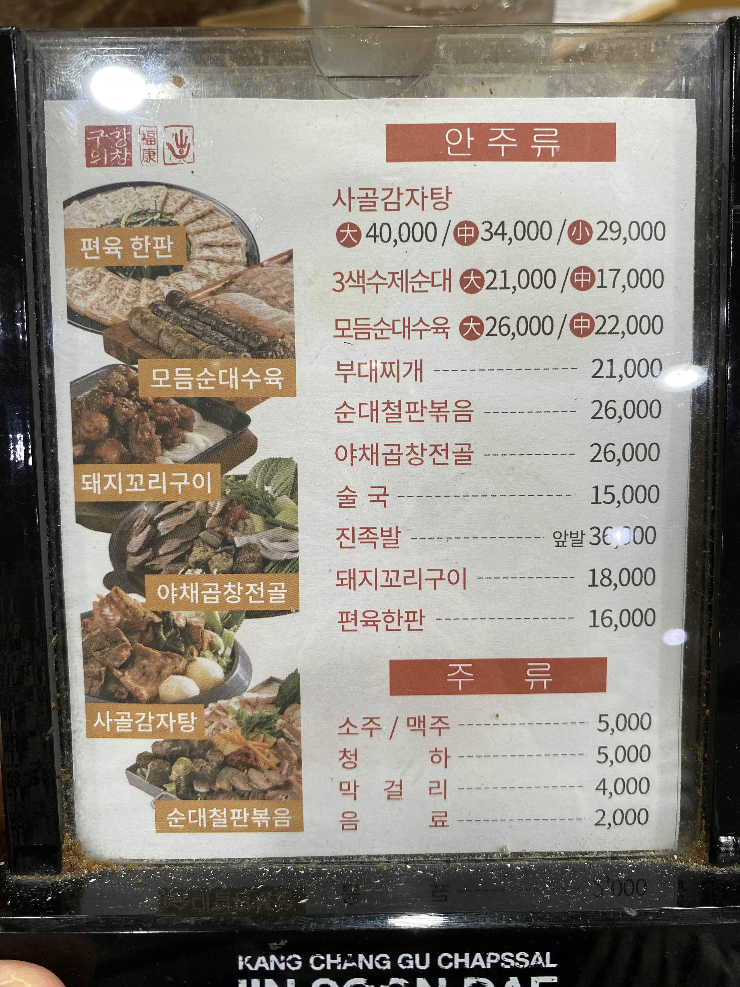 강창구찹쌀진순대 메뉴.