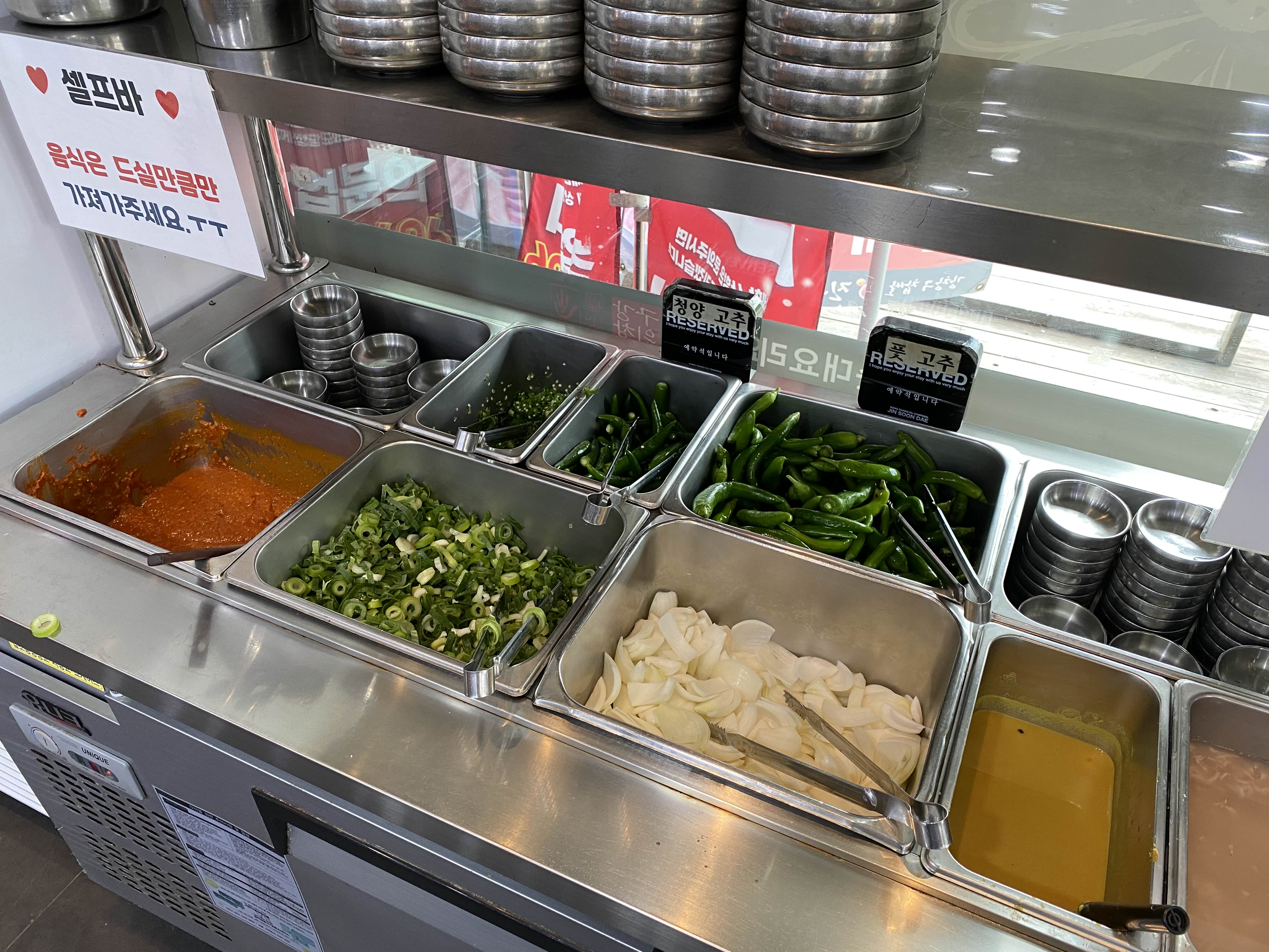 청양고추와 풋고추가 따로 준비되어 있는 점!