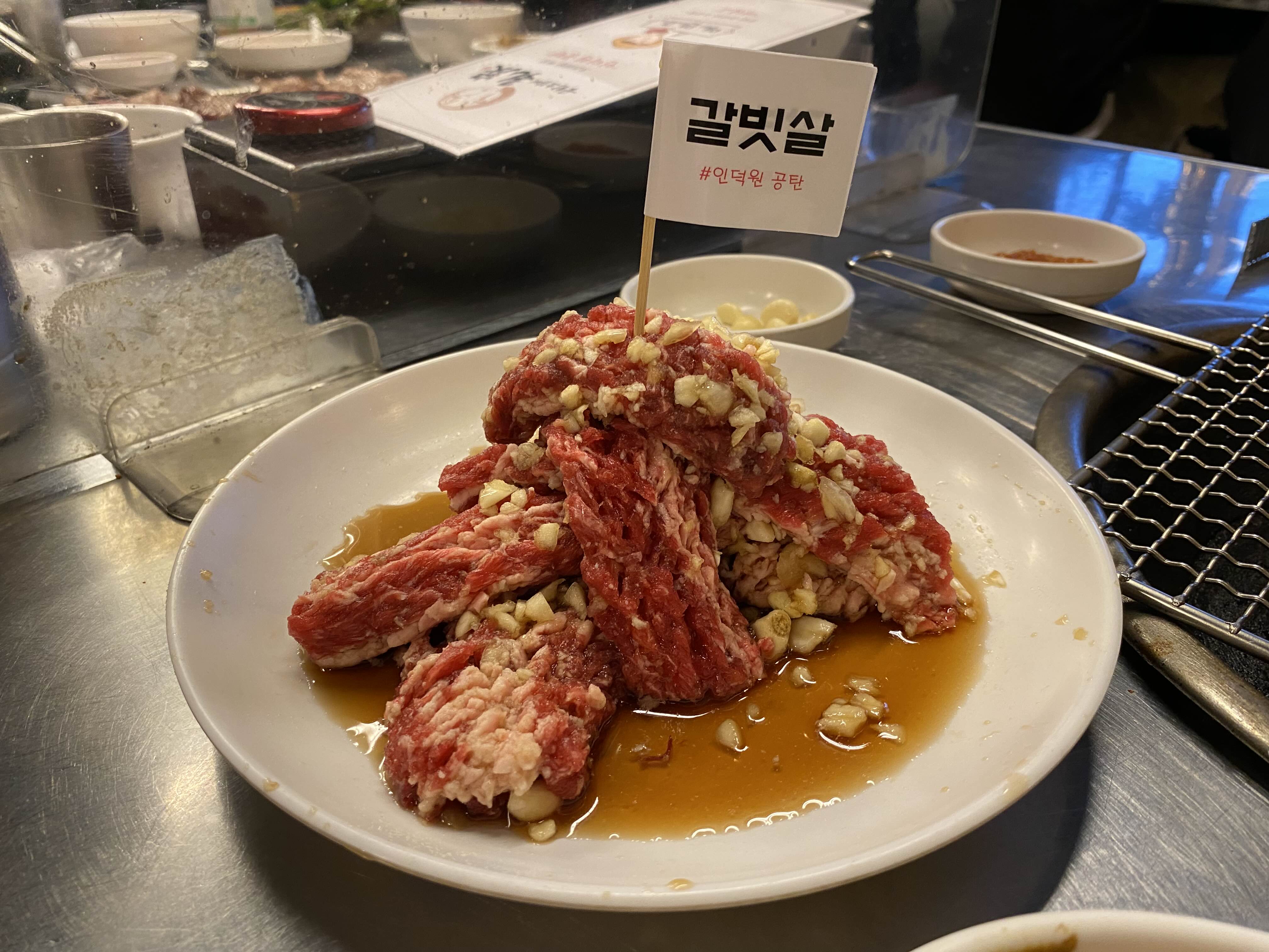 마늘 잔뜩 얹어진 양념소갈빗살.