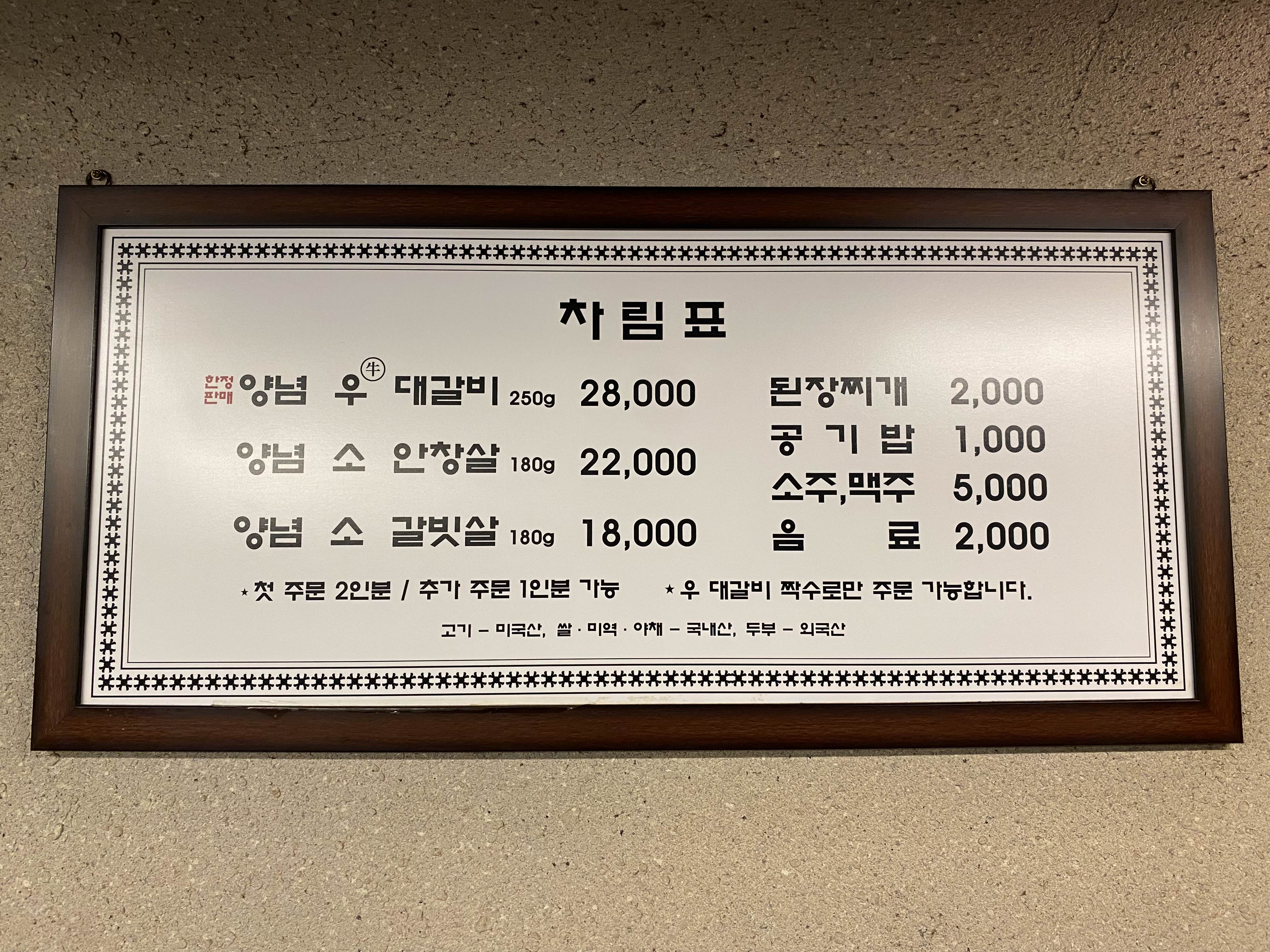 갈빗살로 2인분 먼저 주문해 봤다.