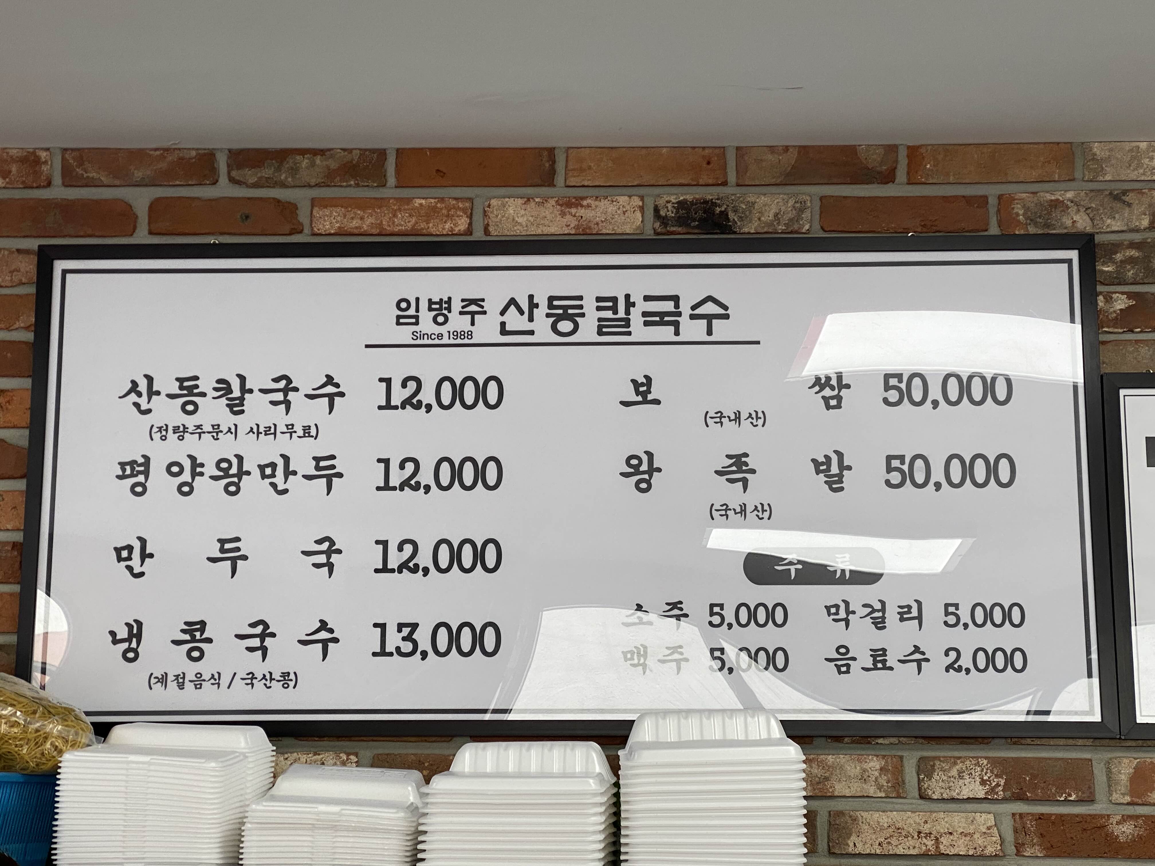 임병주 산동칼국수 메뉴.