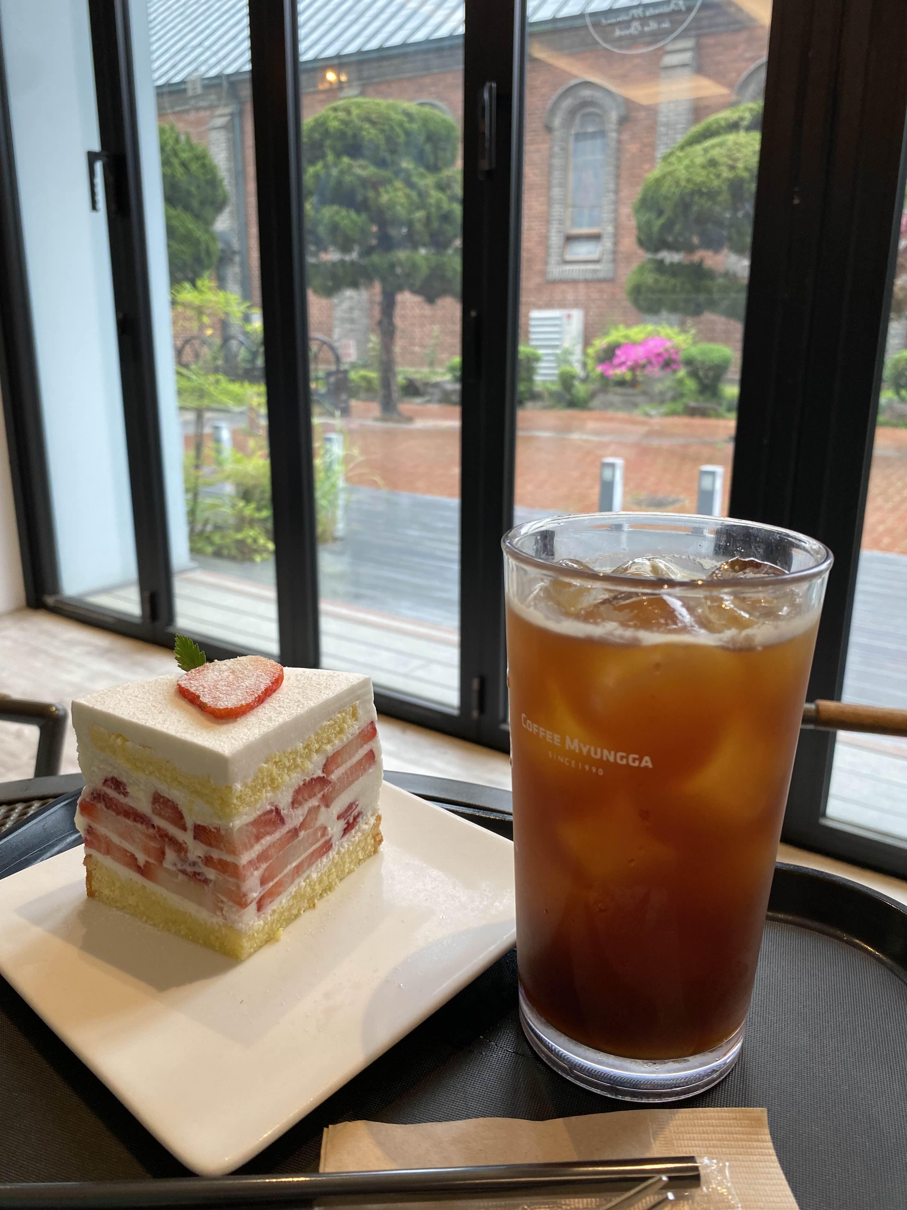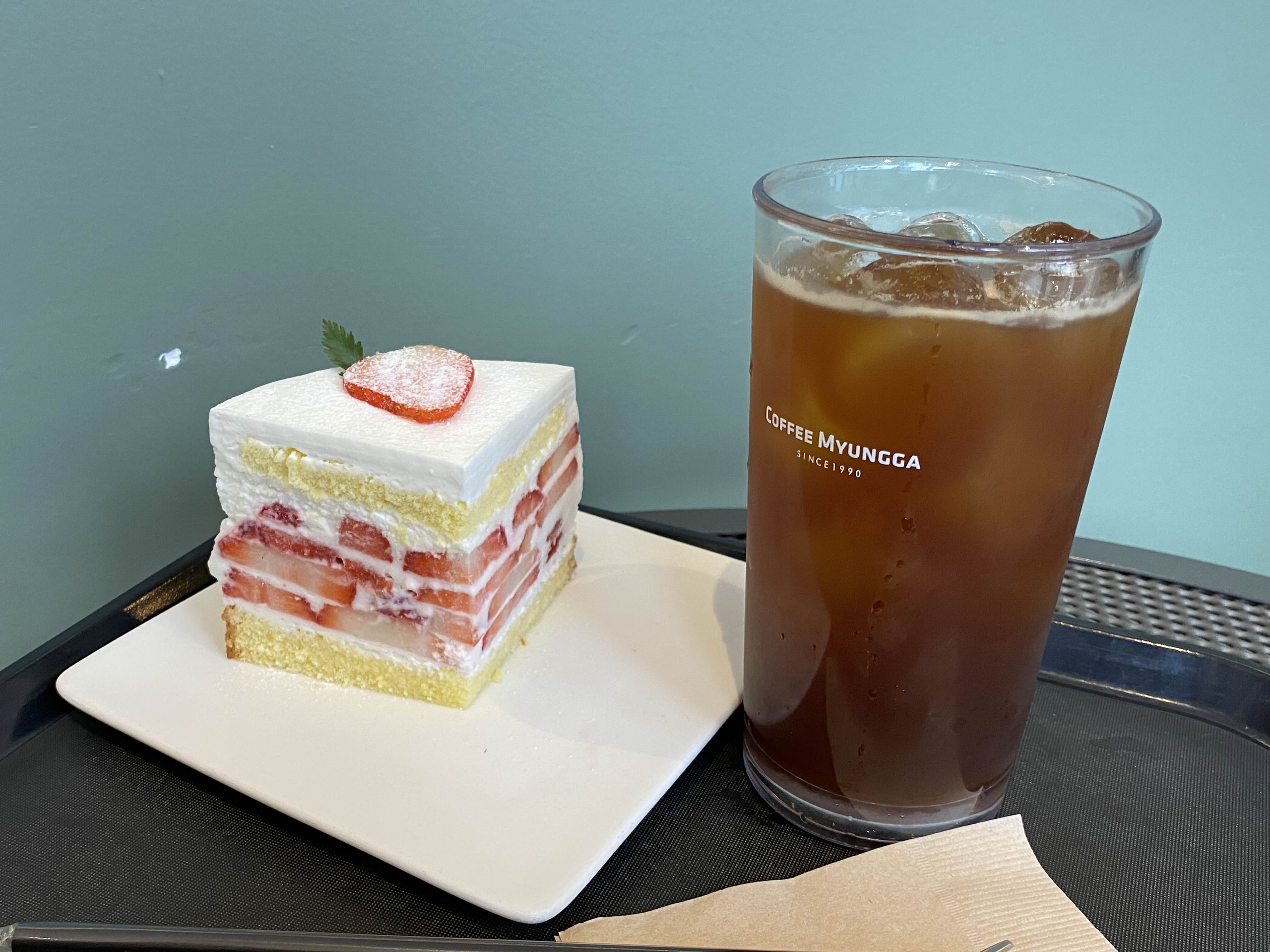 달달한 딸기케이크에 시원한 아이스 아메리카노 한 잔.