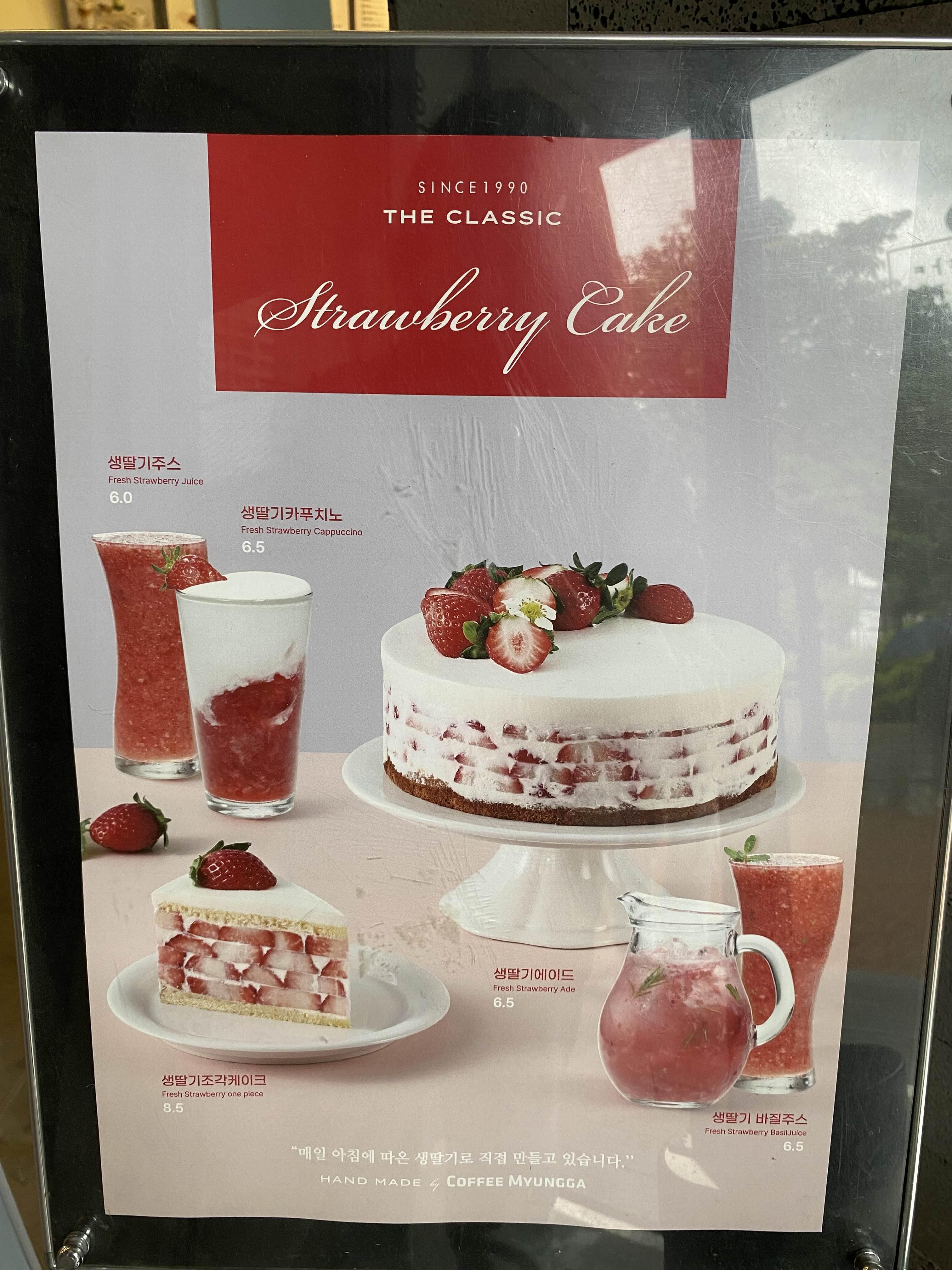 왼편에 커피명가가 보이더니 딸기 케이크 포스터가