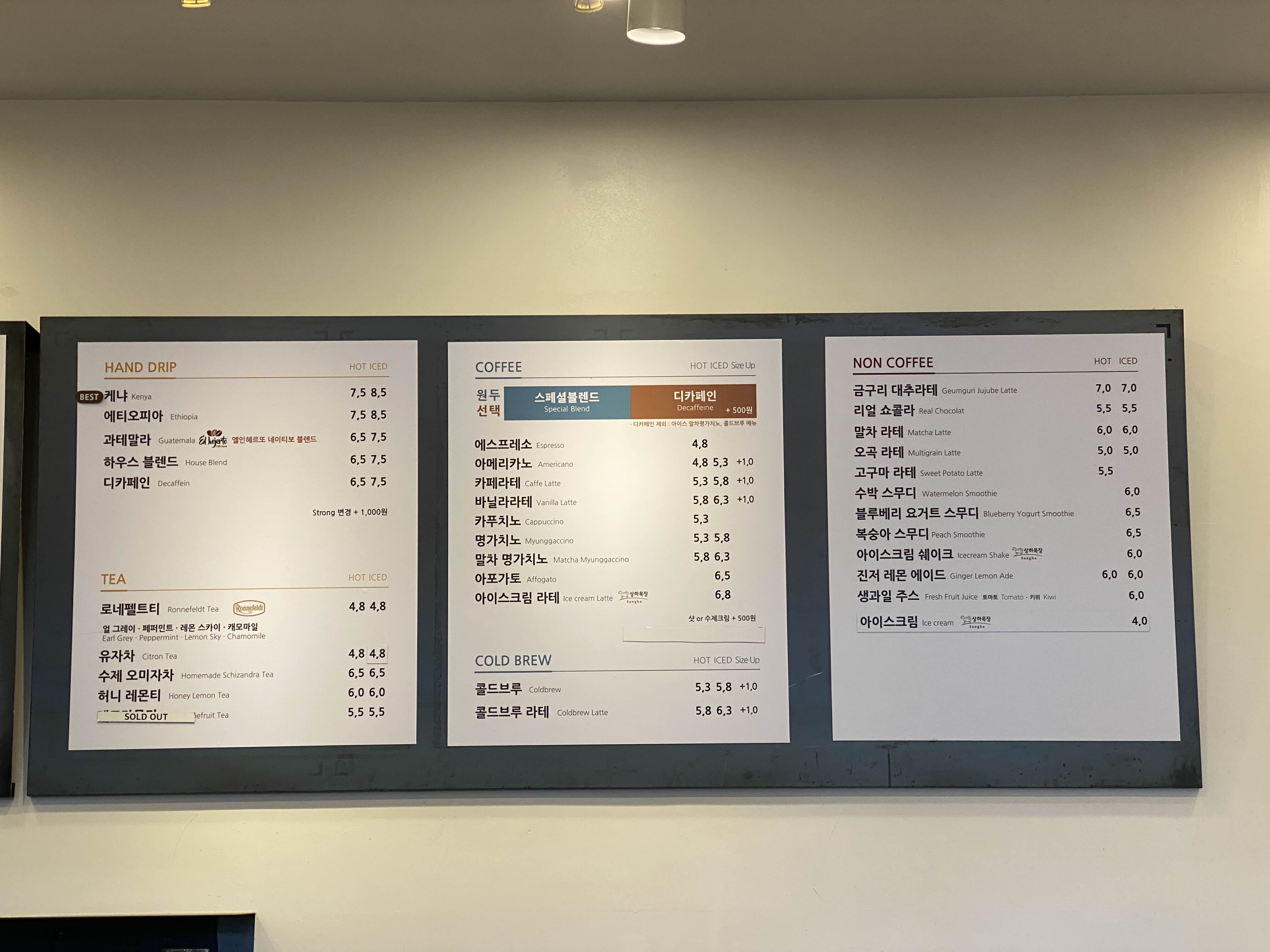 다만, 아이스 음료는 500원씩 비싼 편.