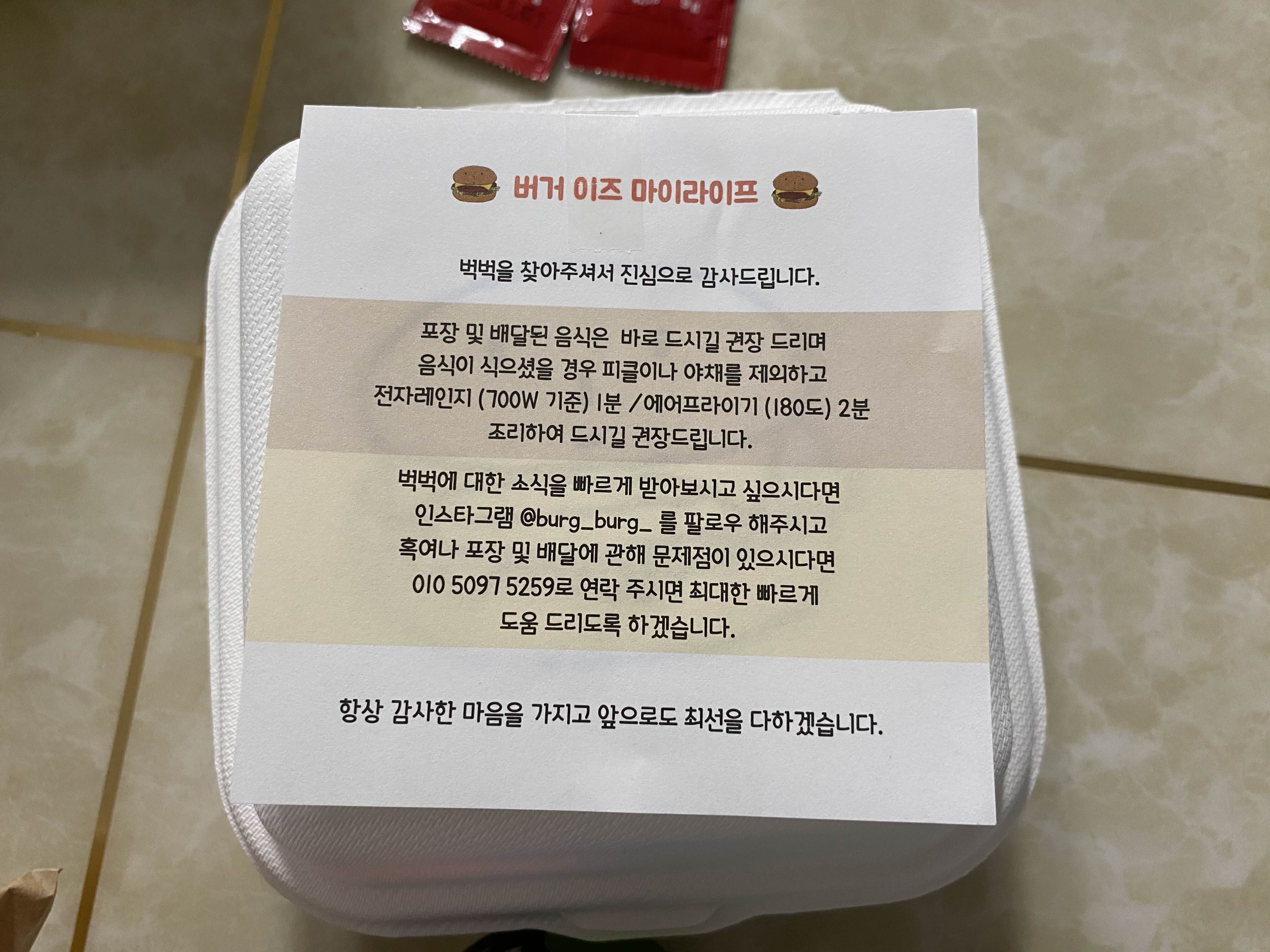 포장 및 배달된 음식의 조리법이 적혀있고