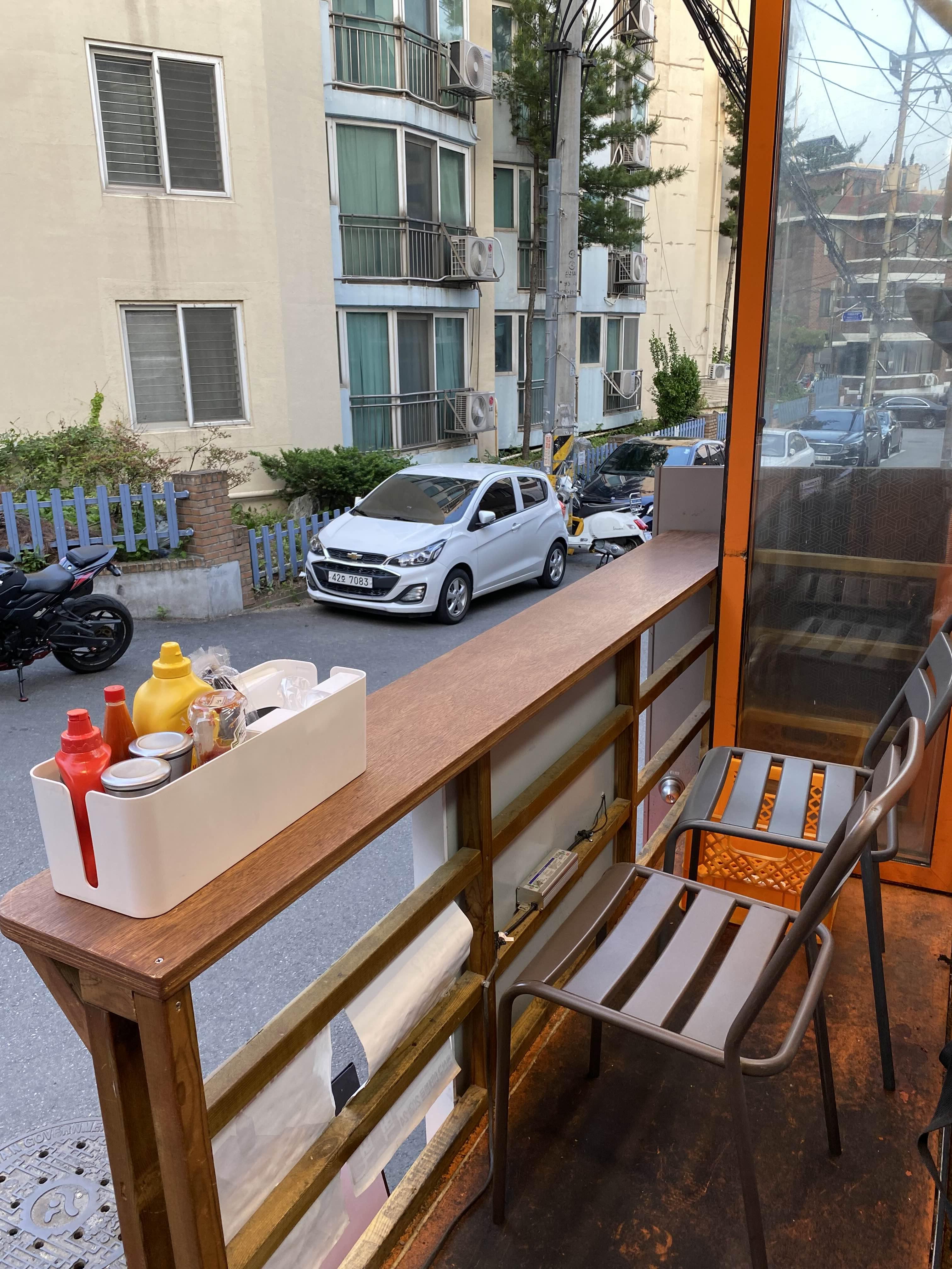 매장 앞 좁은 공간에 2개 좌석이 있는데