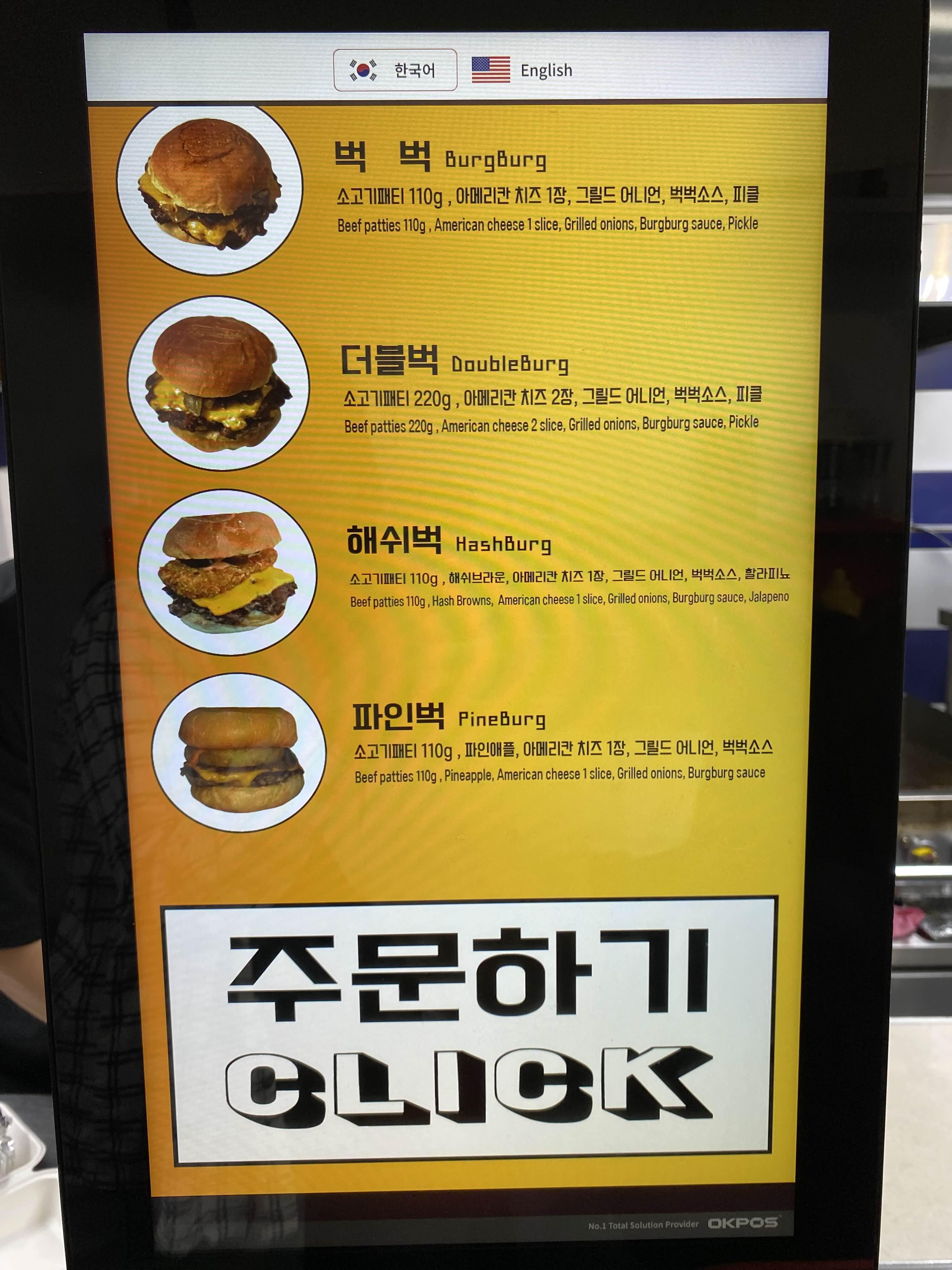 벅벅이 기본 햄버거 메뉴로