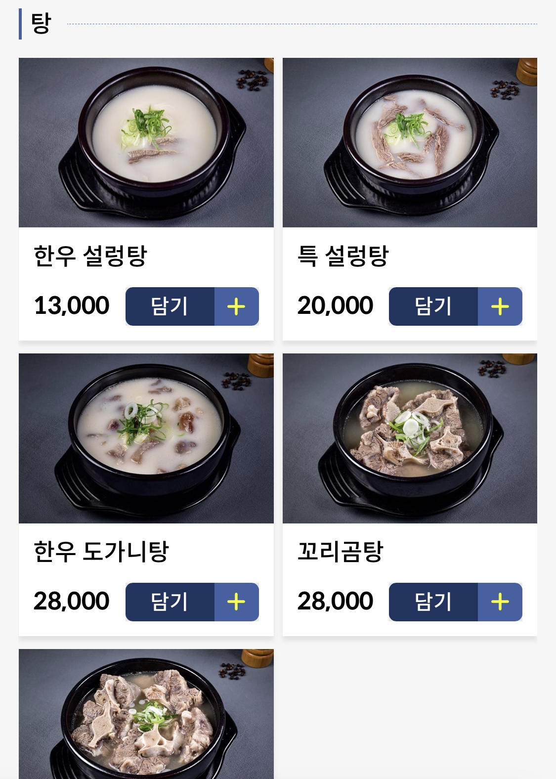 설렁탕과 한우 도가니탕, 꼬리곰탕,