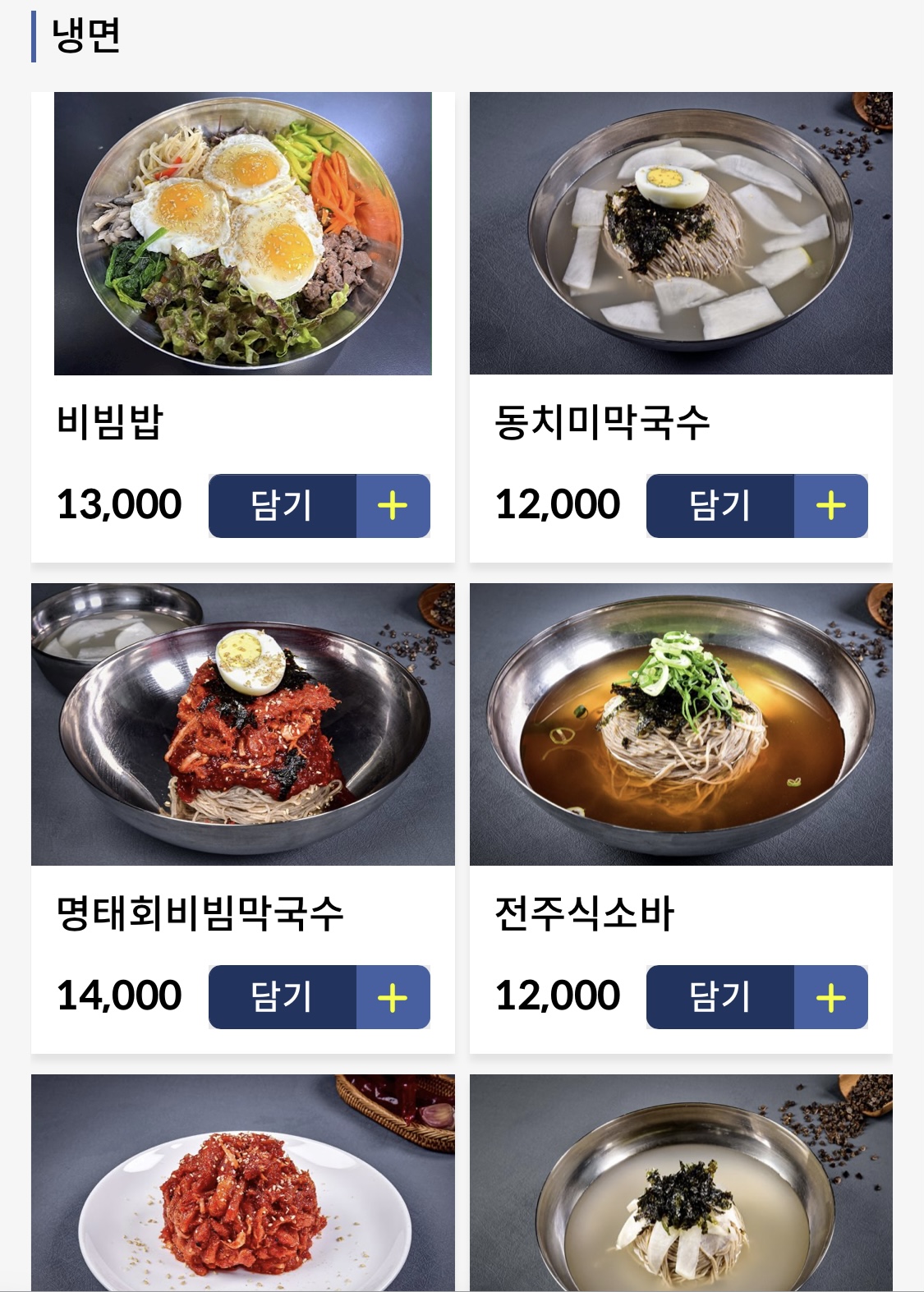 동치미 막국수와 명태회비빔막국수부터