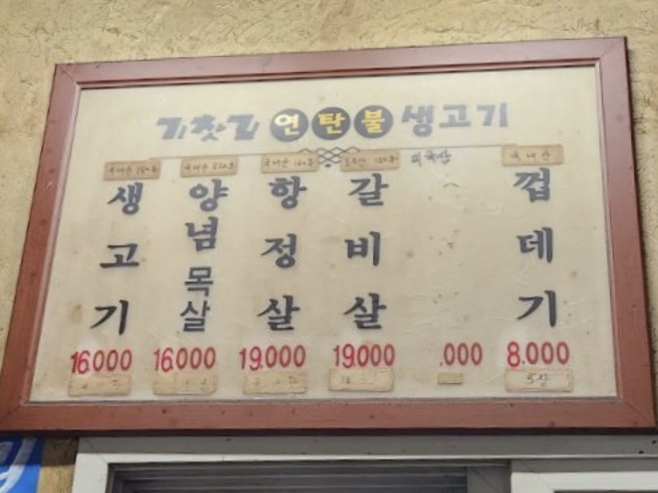 기찻길 연탄불 생고기 메뉴.