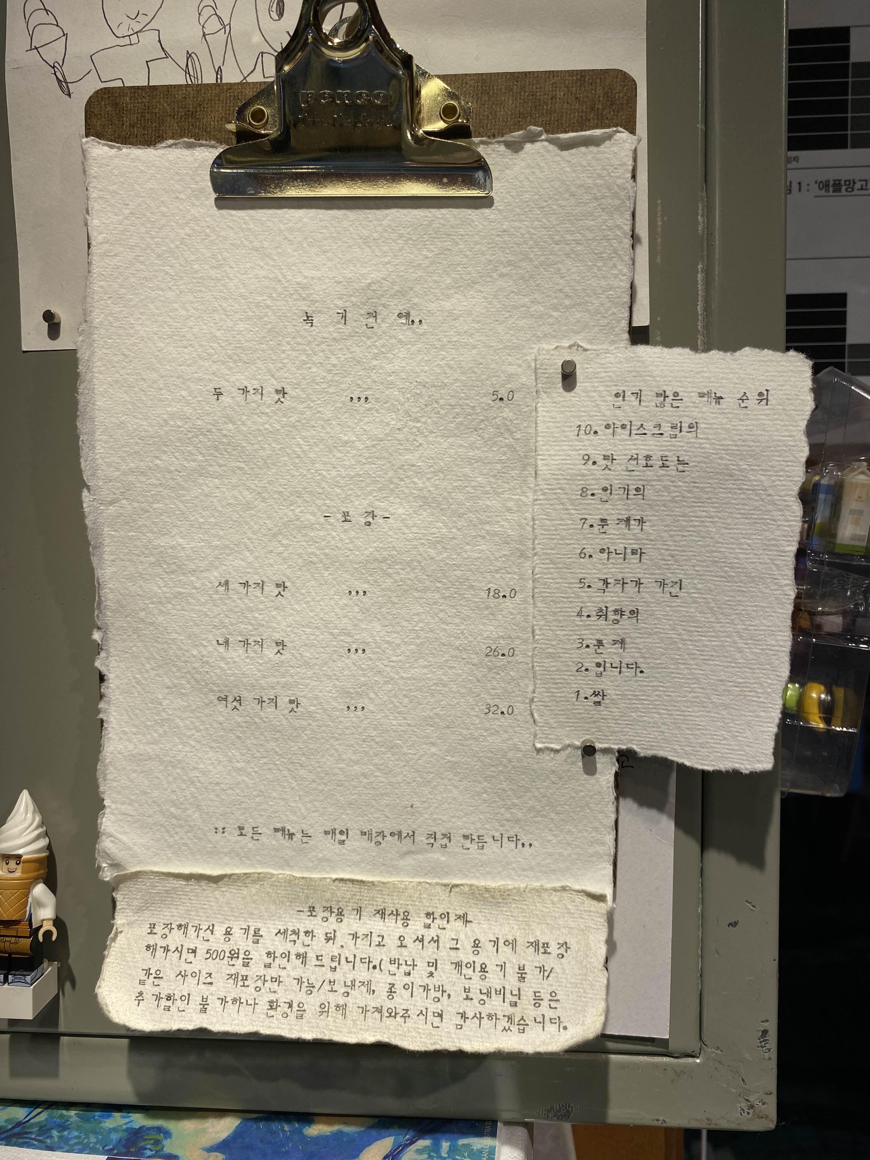 지난 날의 메뉴도 켜켜이 쌓여있는데