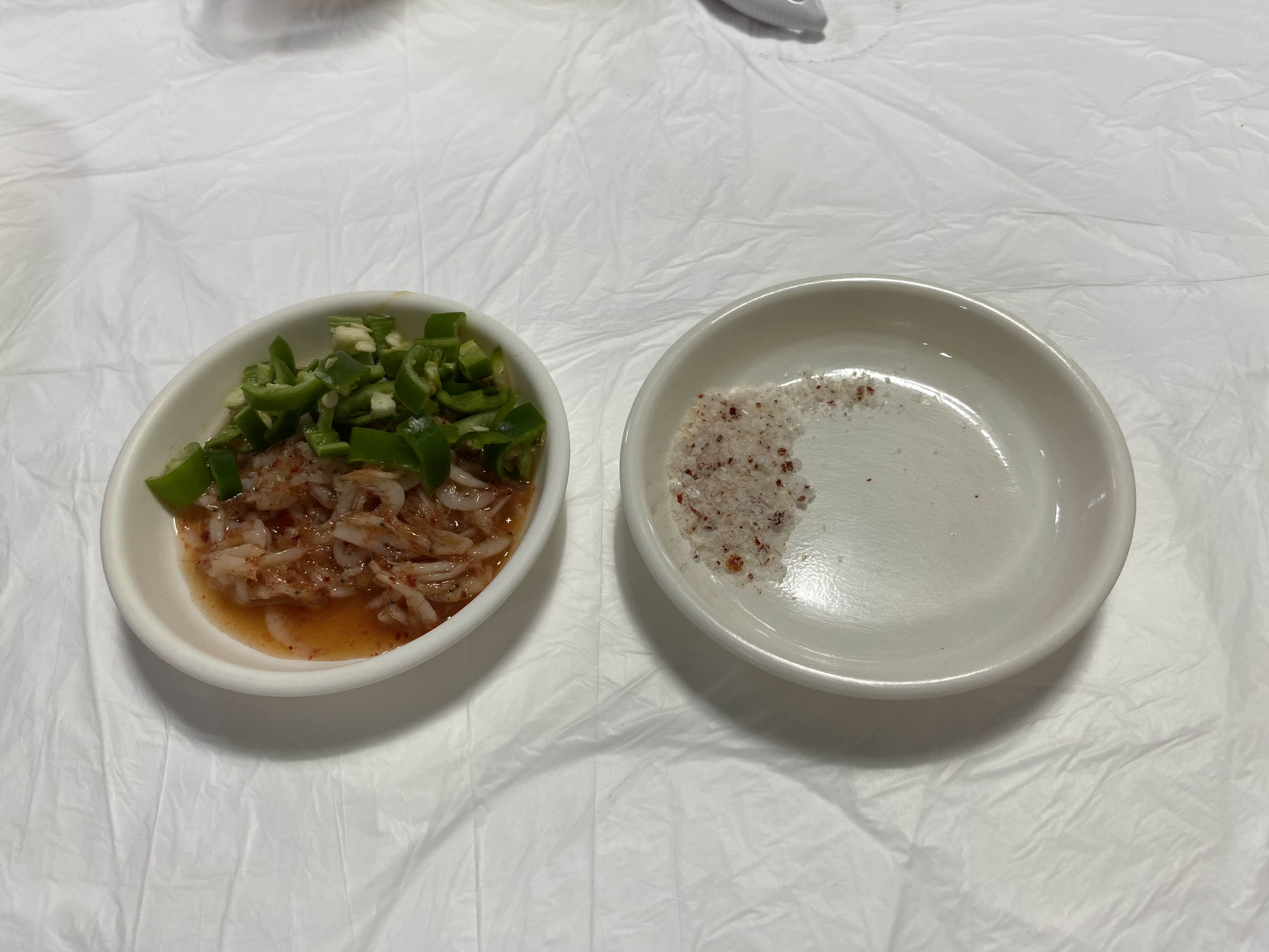 소금과 새우젓, 고추가 준비된다.