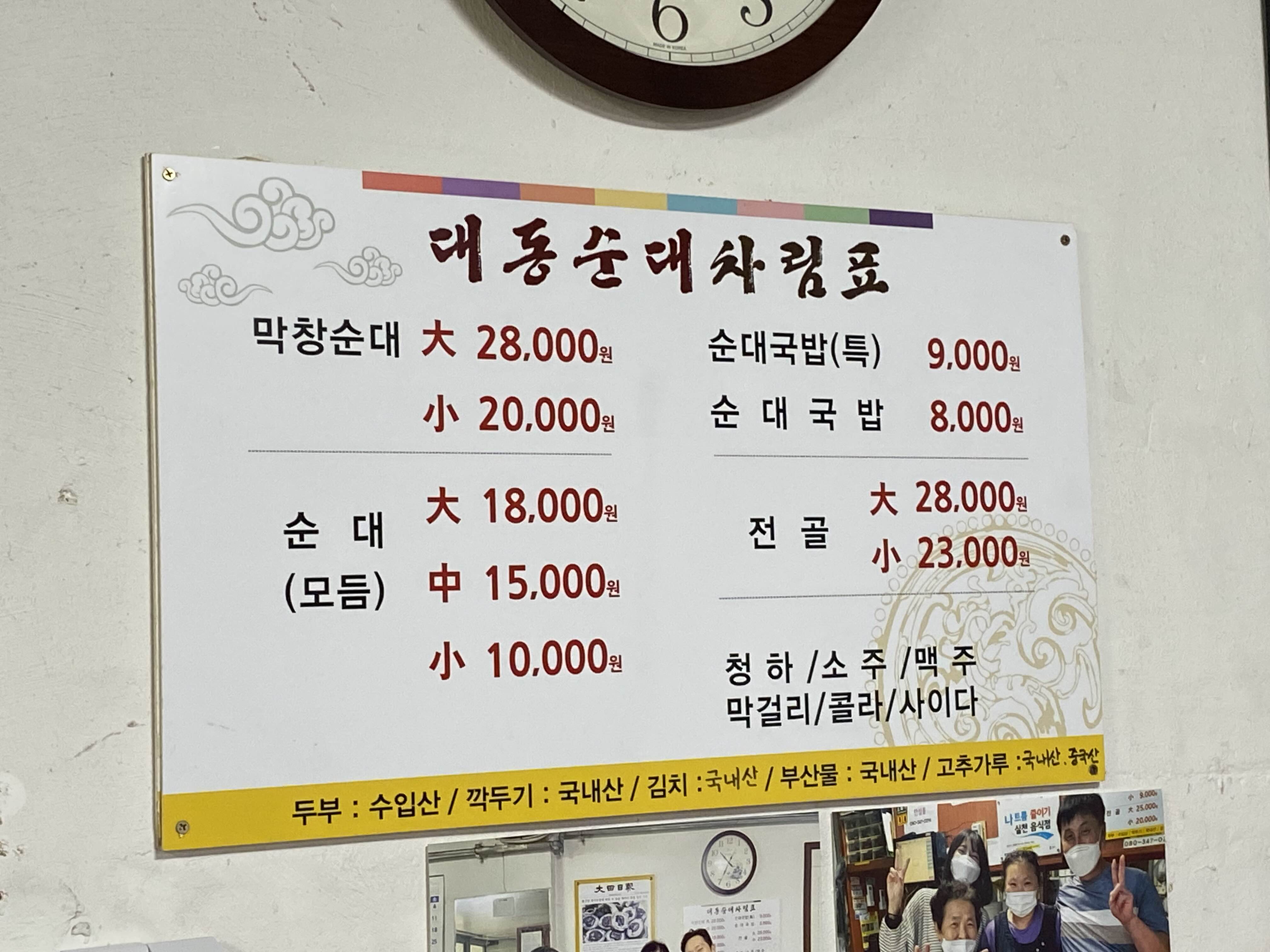 대동순대 메뉴