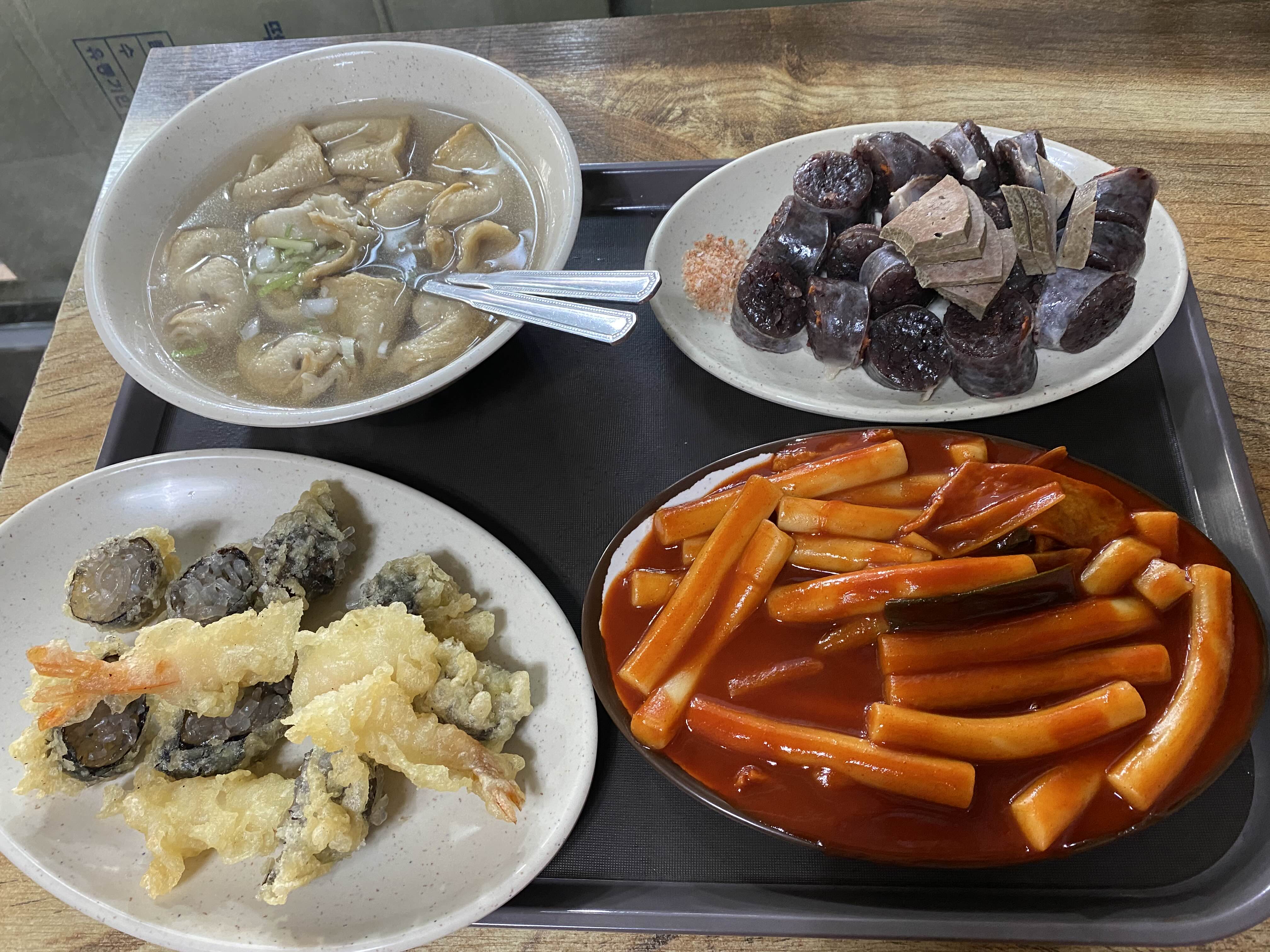 메뉴는 떡볶이, 찹쌀순대, 튀김, 어묵.