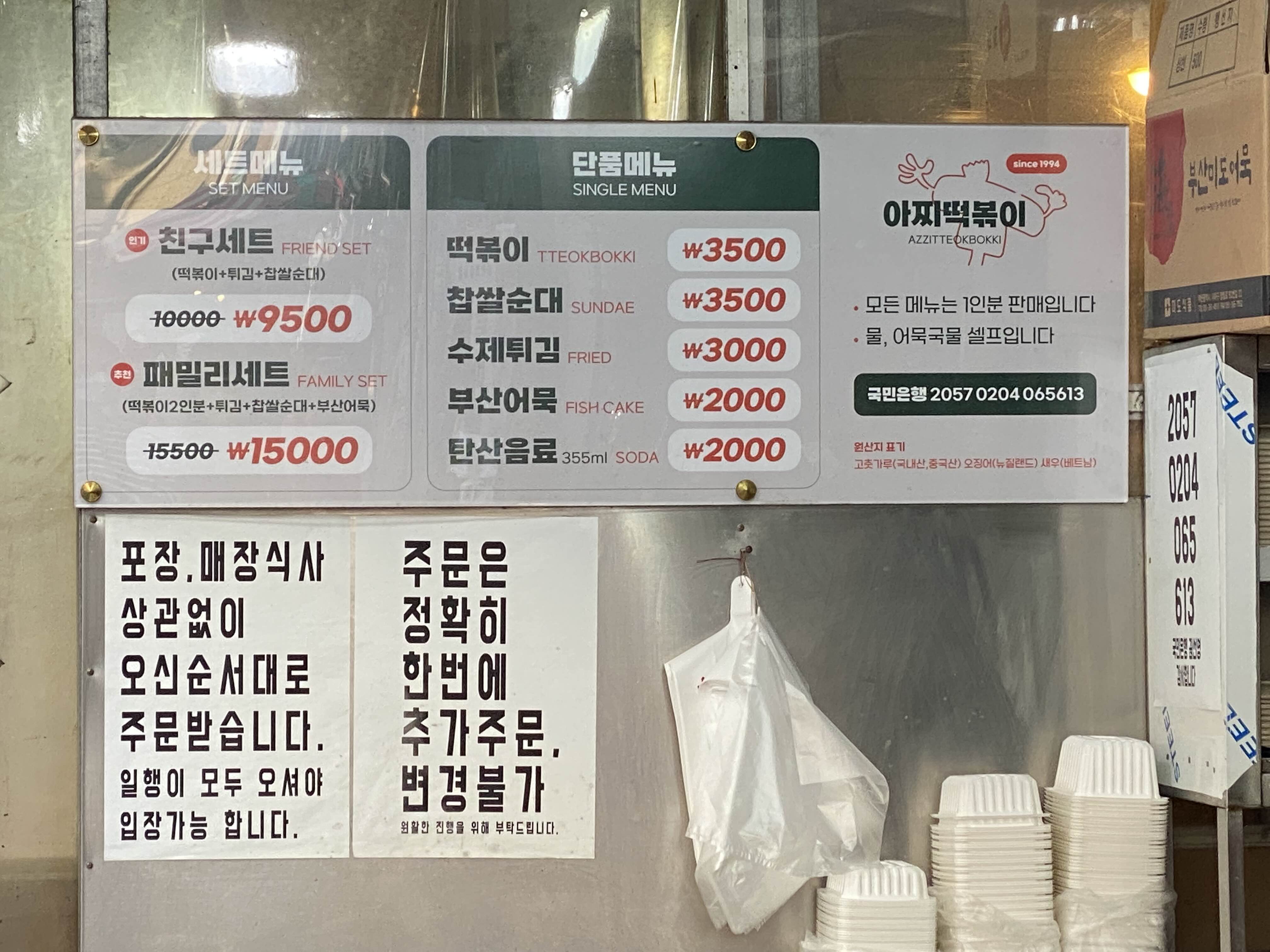 아찌떡볶이의 안내문