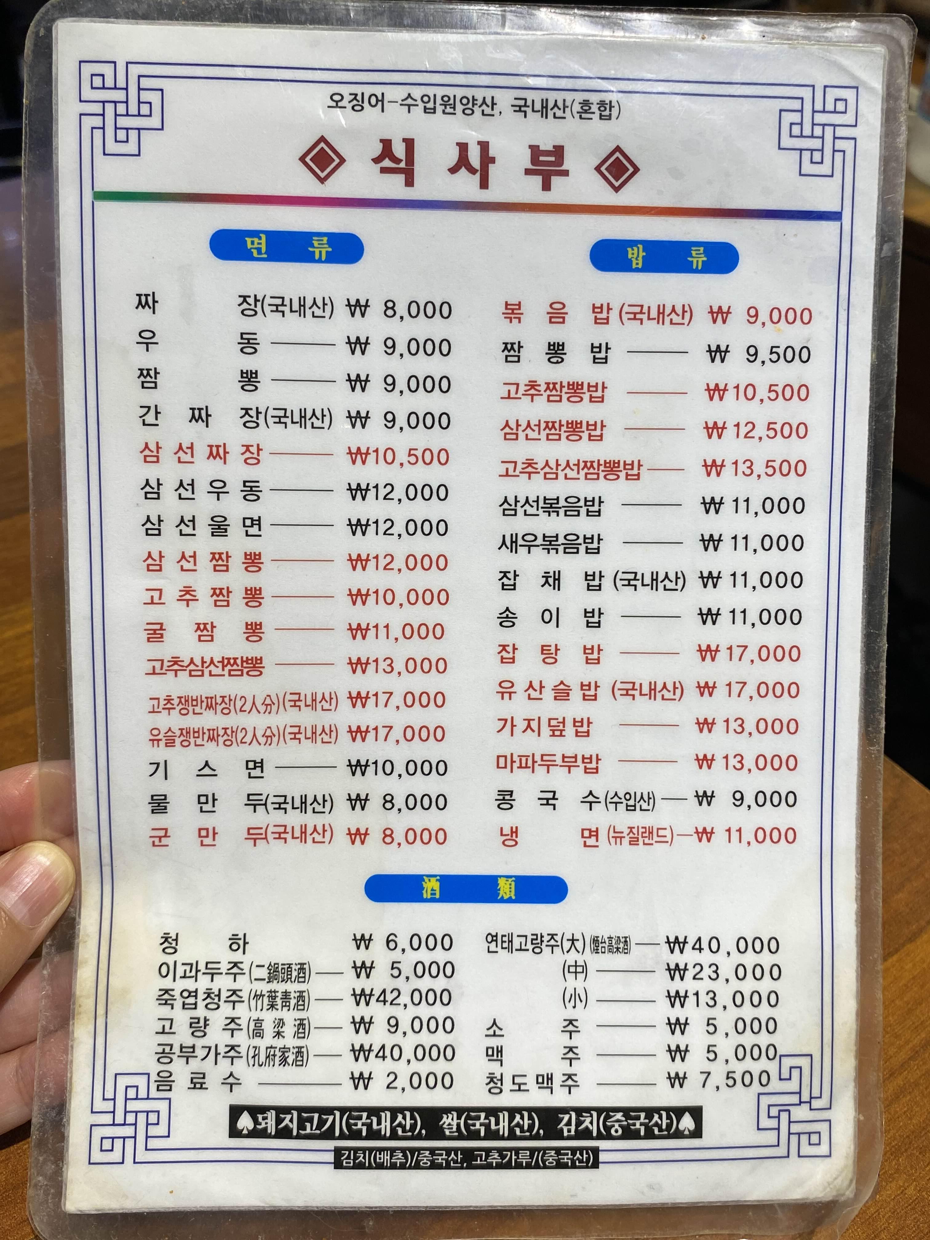 메뉴에는 고추짬뽕과 고추삼선짬뽕