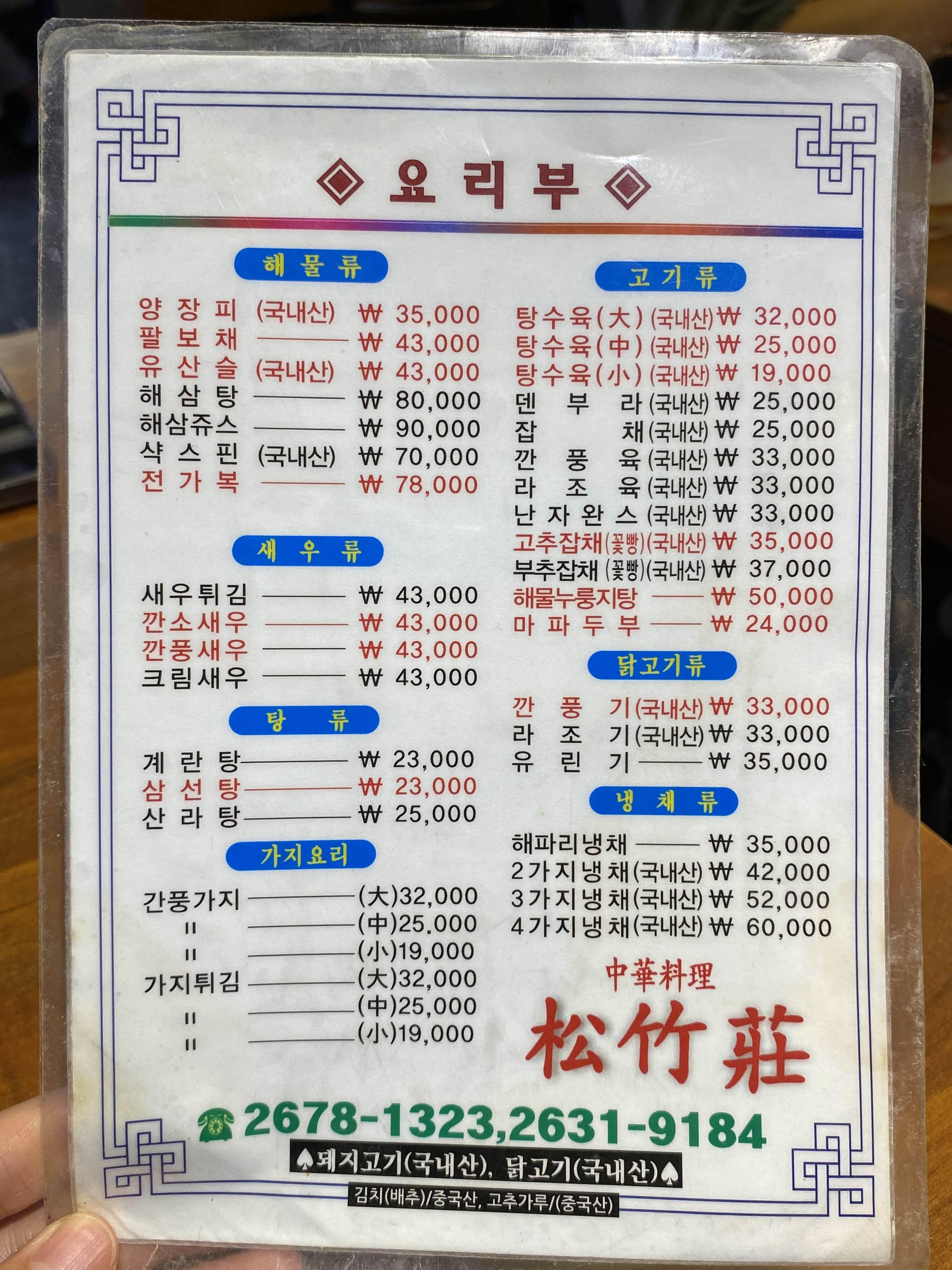 송죽장 메뉴