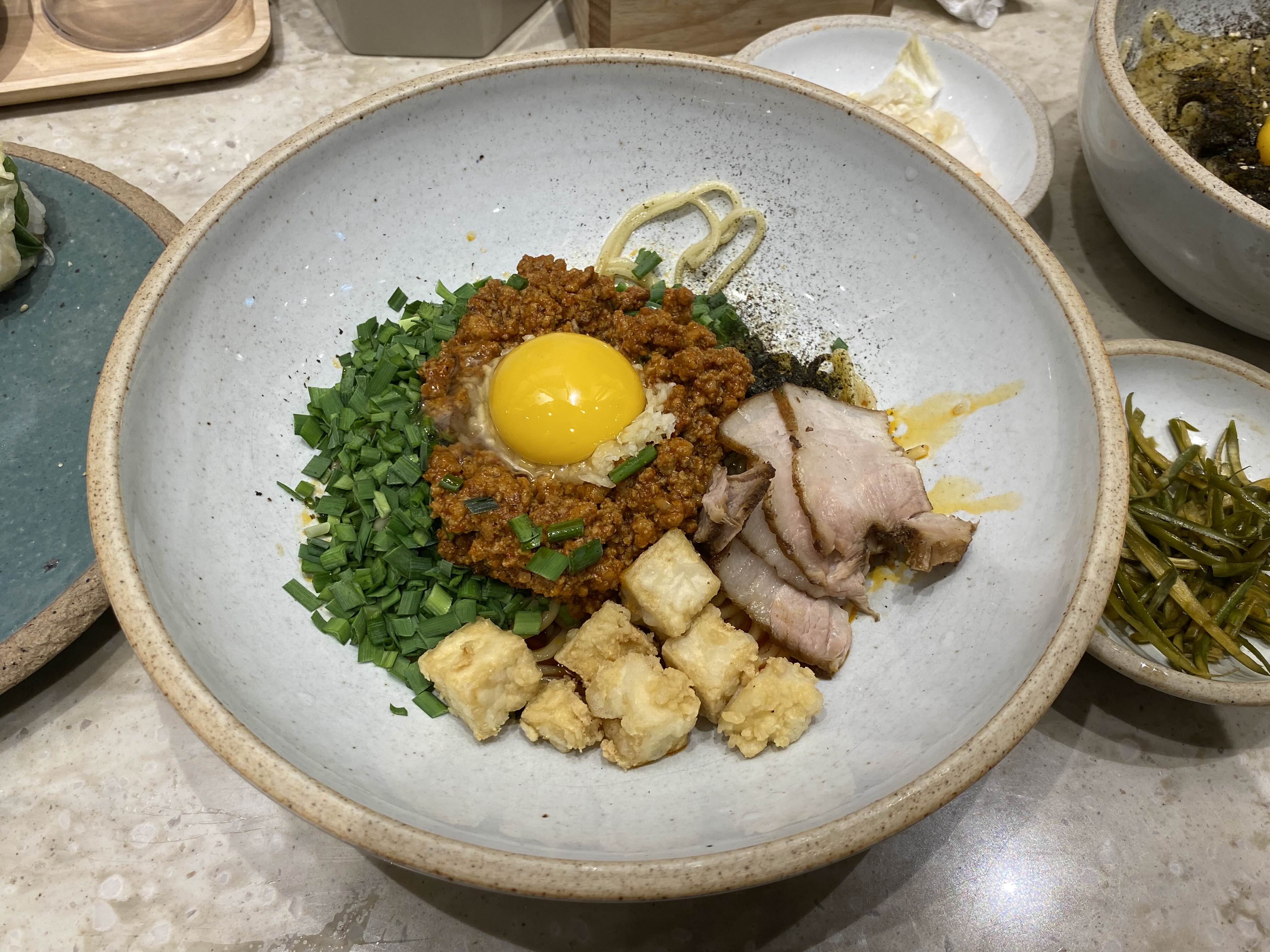 고명으로 고기수육도 있고 두부 튀김도 있는데