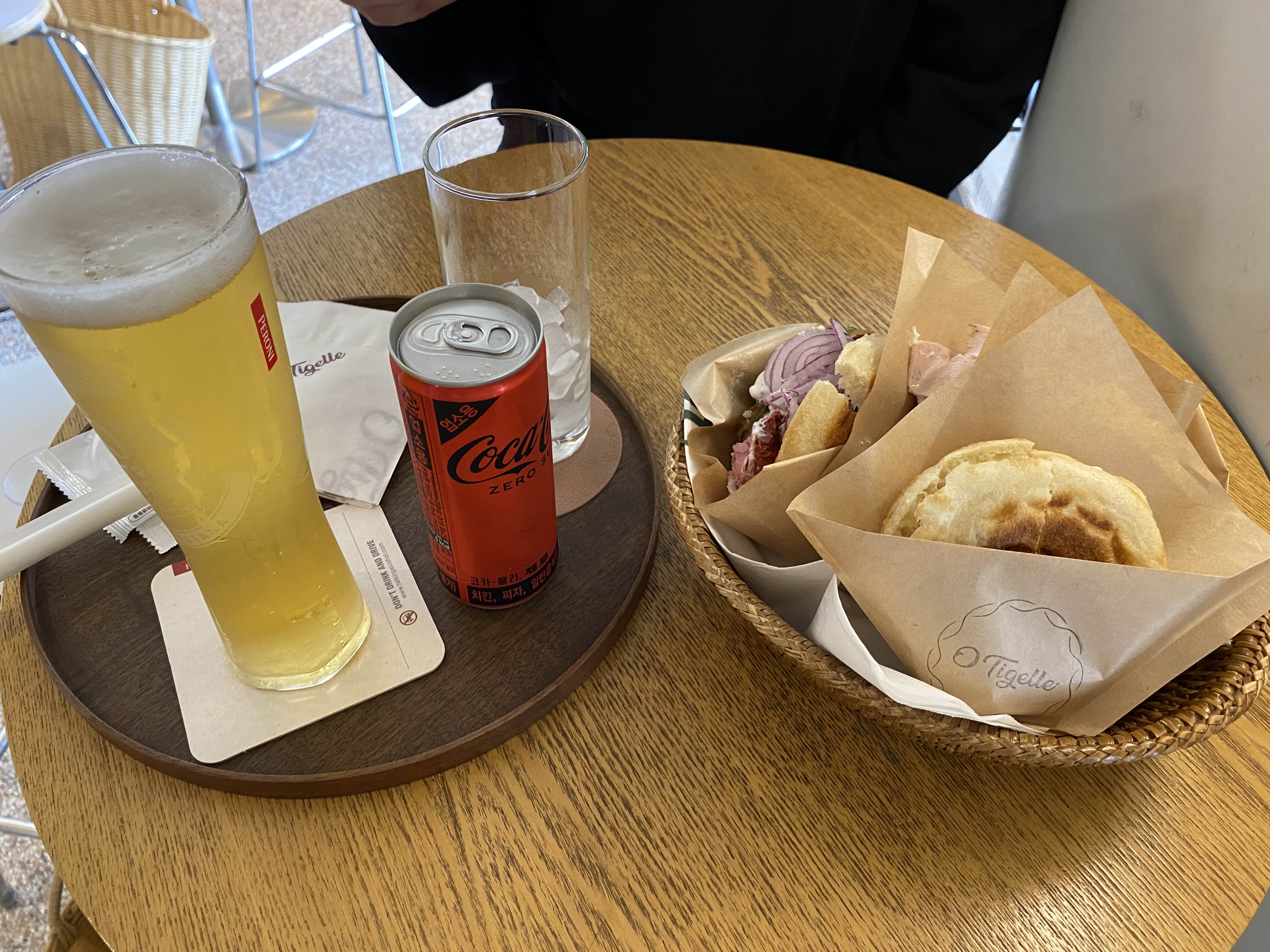 제로콜라, 페로니 생맥주 한 잔.