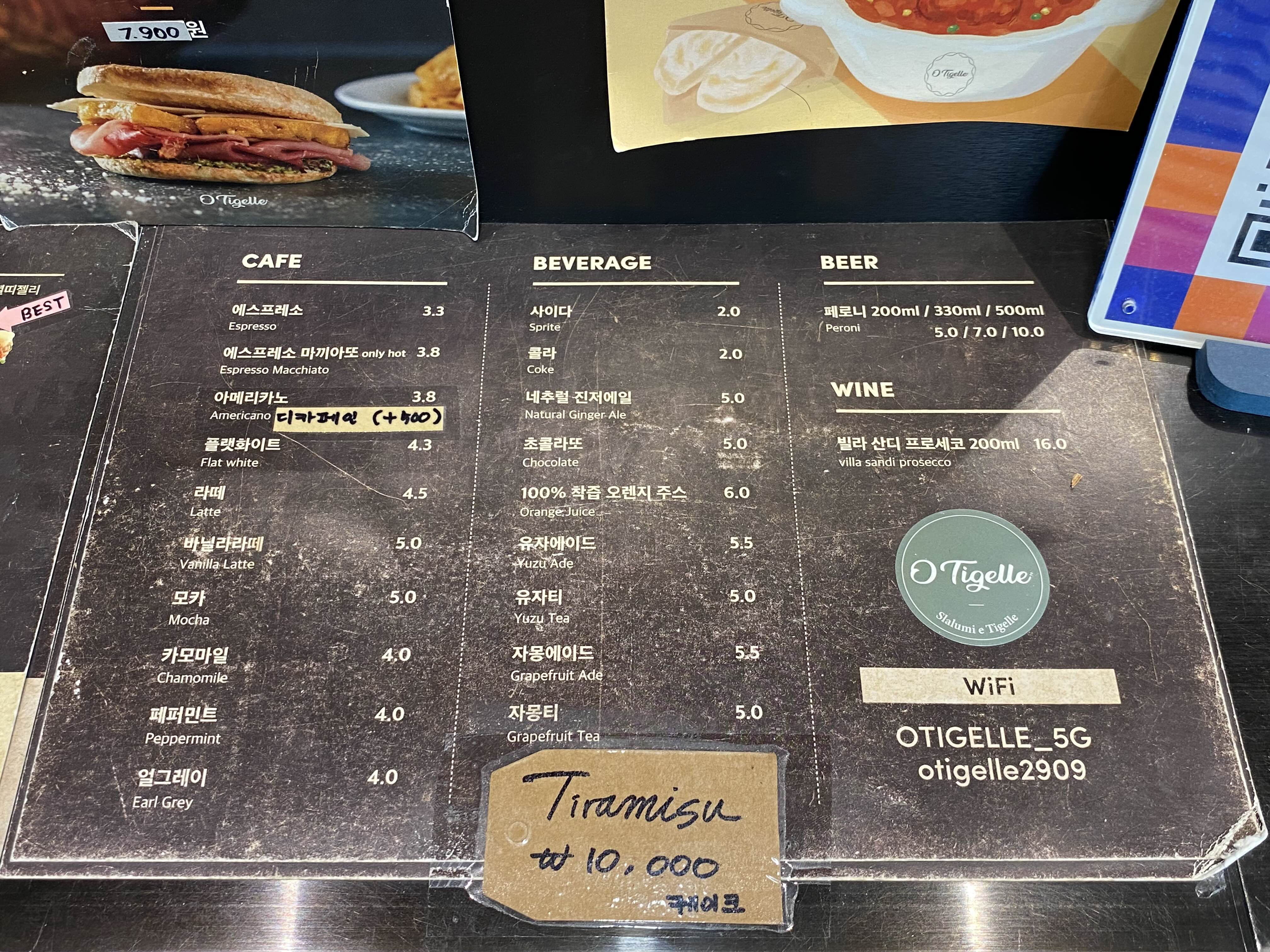 오띠젤리 메뉴