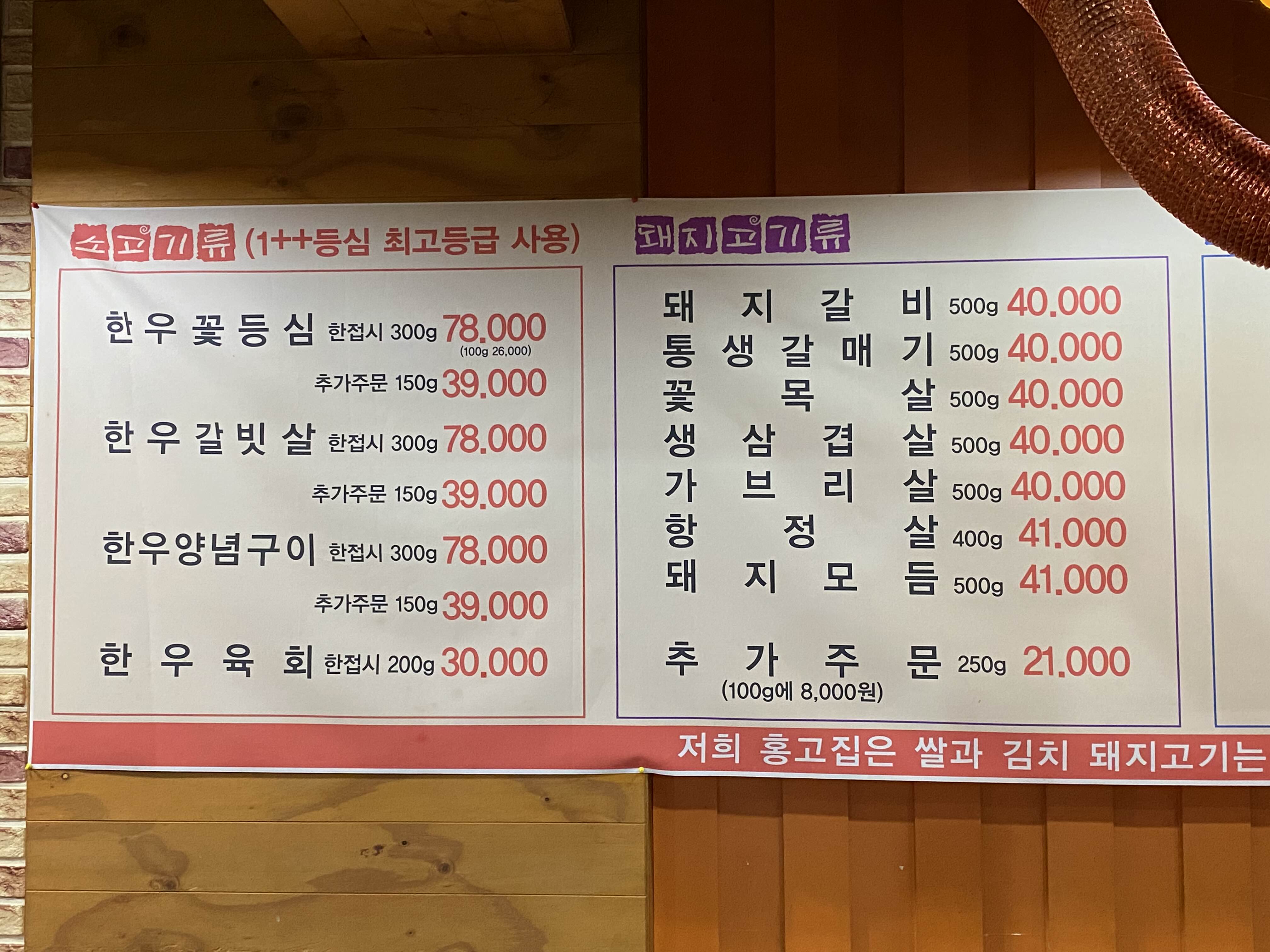 홍고집은 한우 소고기와 돼지고기를 판매하고 있고