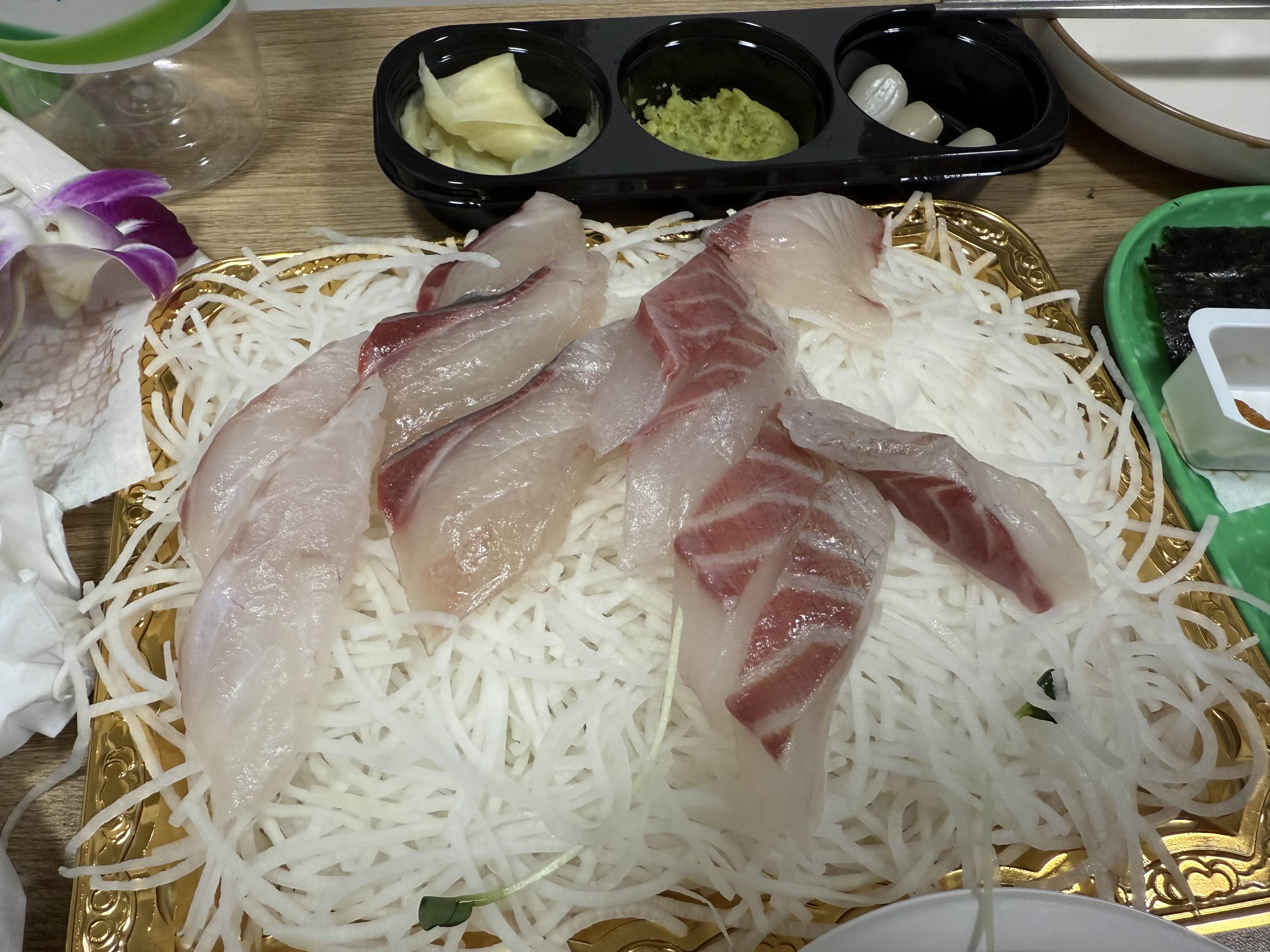 사실 대방어와 참돔, 광어지느러미, 참치 등