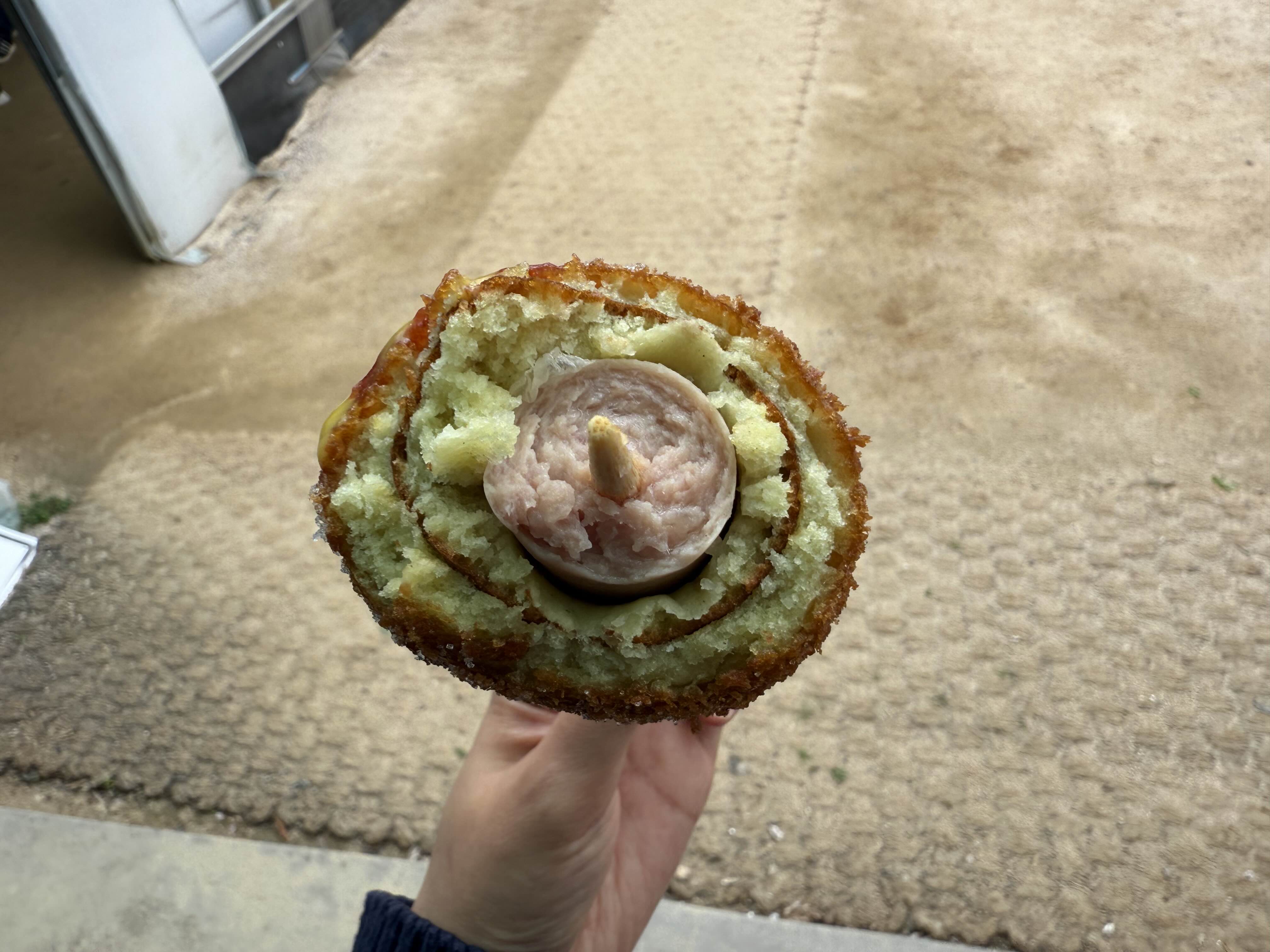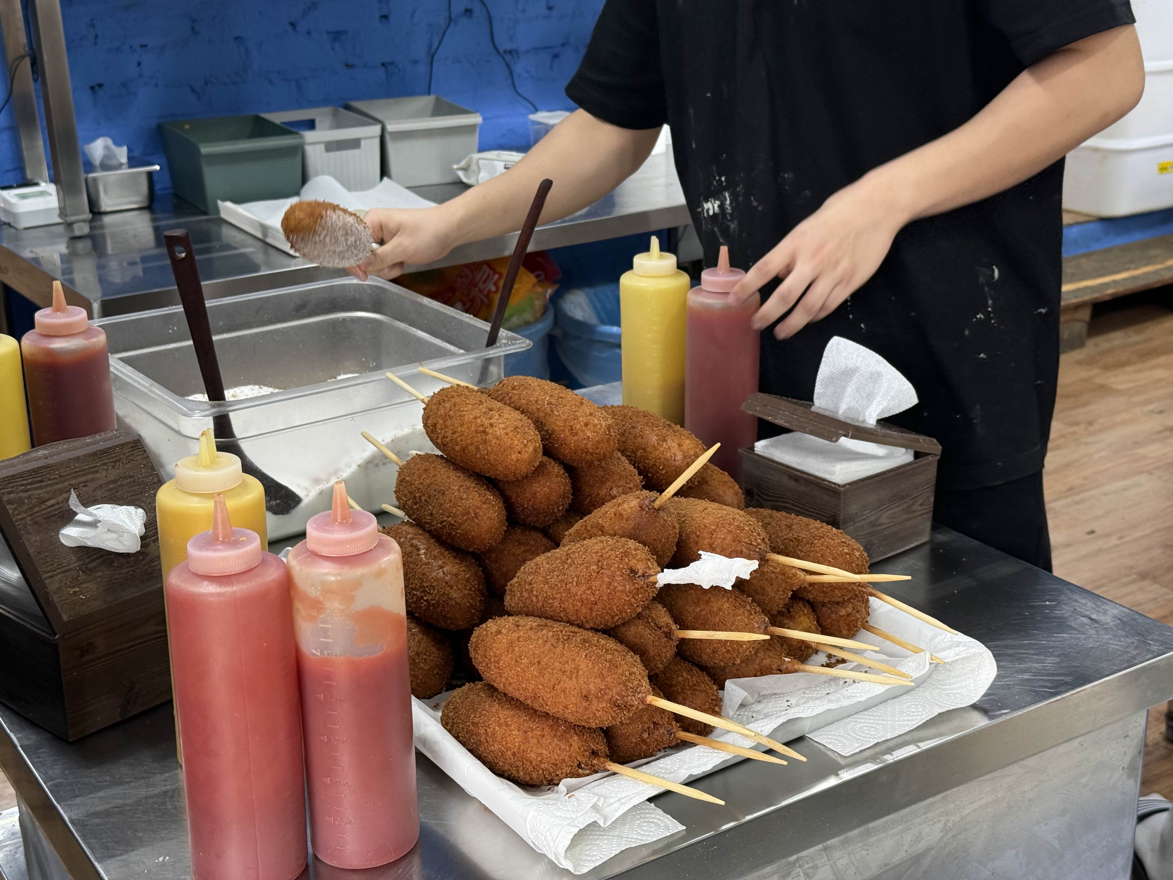 오동통한 소시지를 감싼 두 겹의 튀김옷은