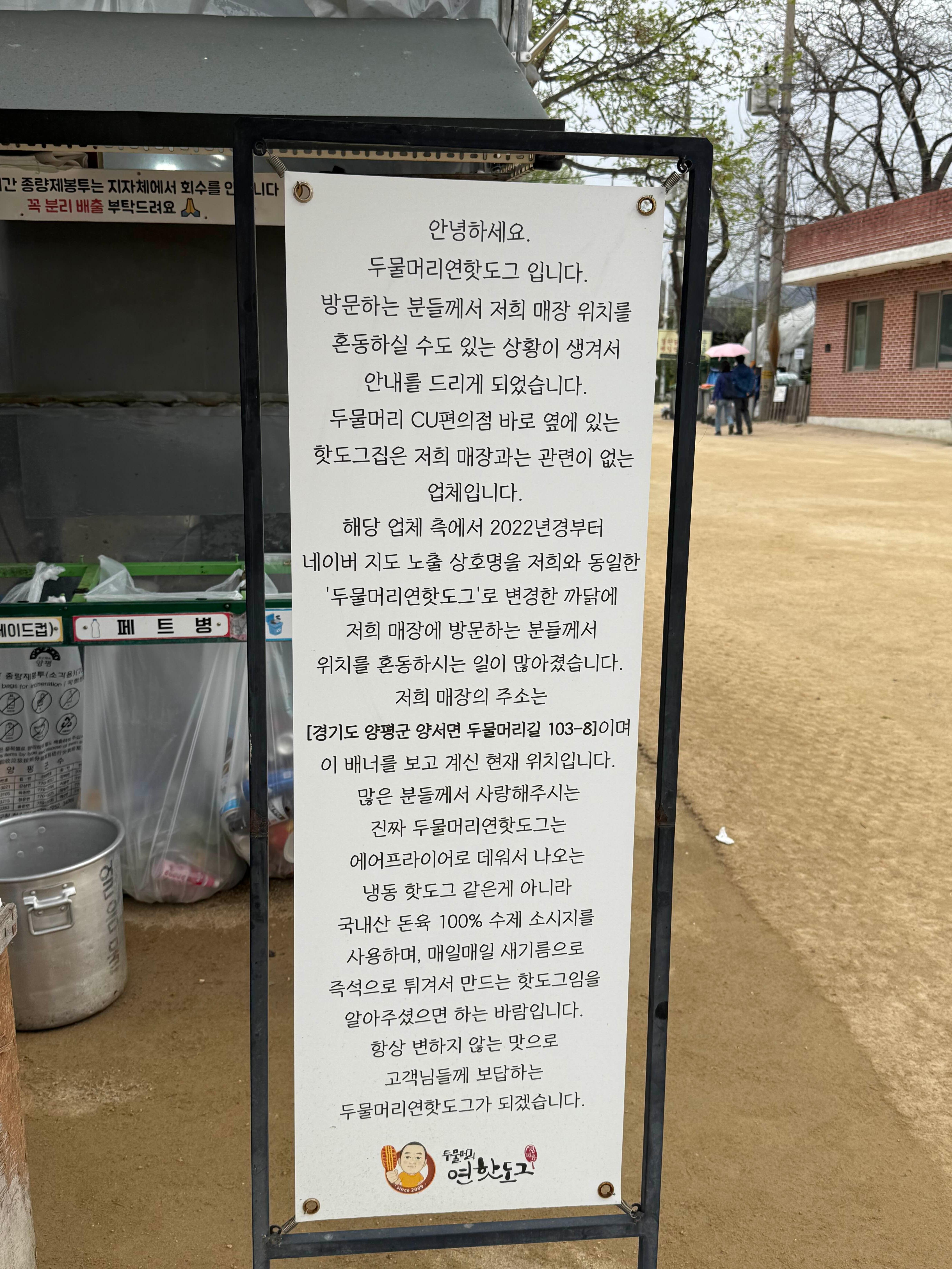 똑같이 ’두물머리 연핫도그‘를 판매하고 있는데
