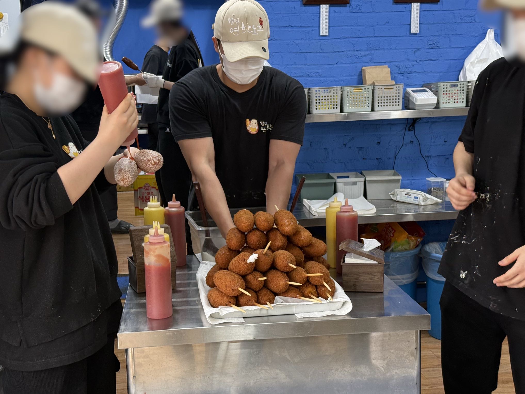 한 손에 모두 들고 소스 뿌려서 한 손에 건네주심… 😇