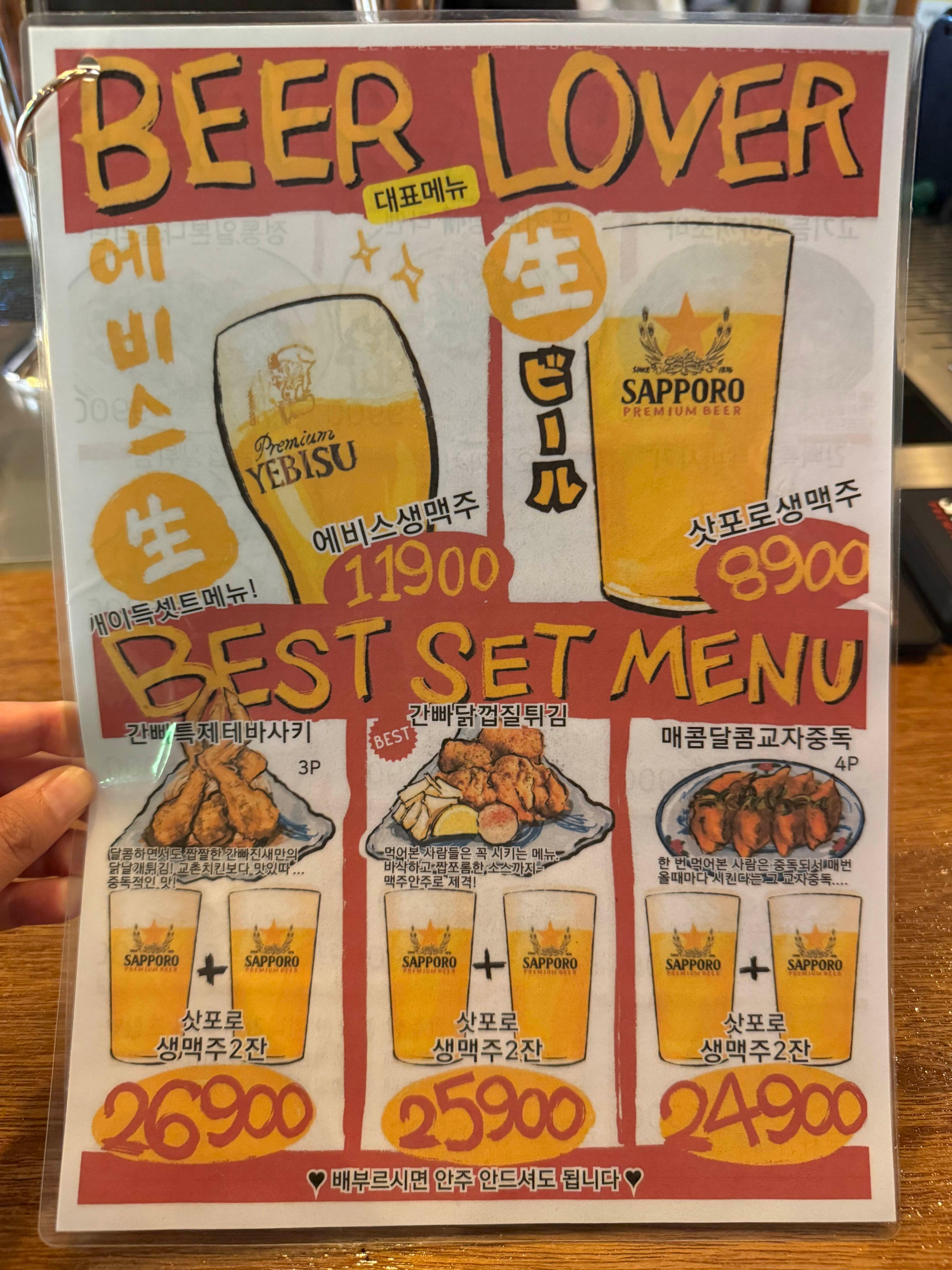간빠진새의 대표메뉴는 바로 에비스와 삿포로 생맥주.
