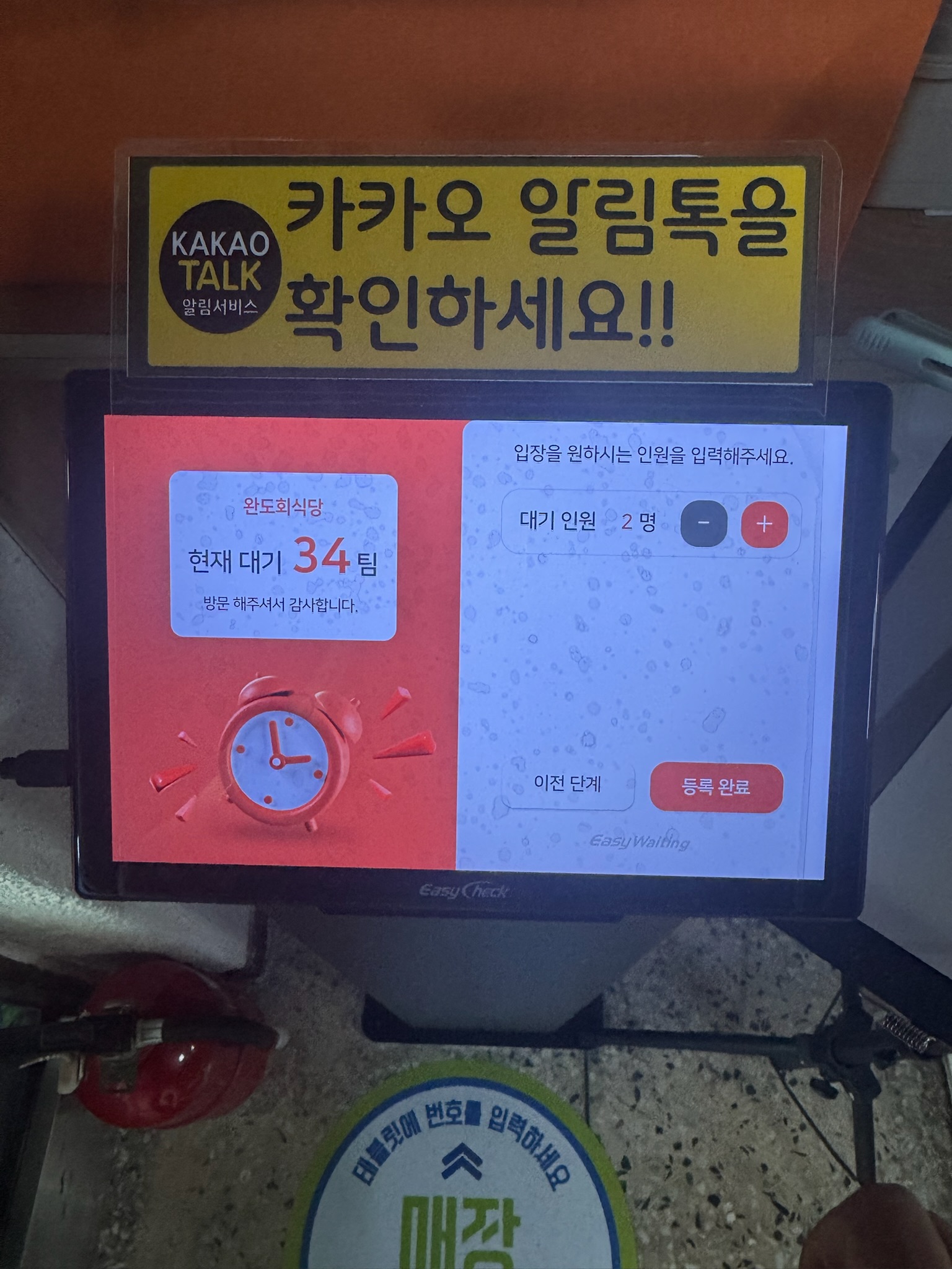 가게 내부에 위치한 웨이팅 기계에 등록하면 되고