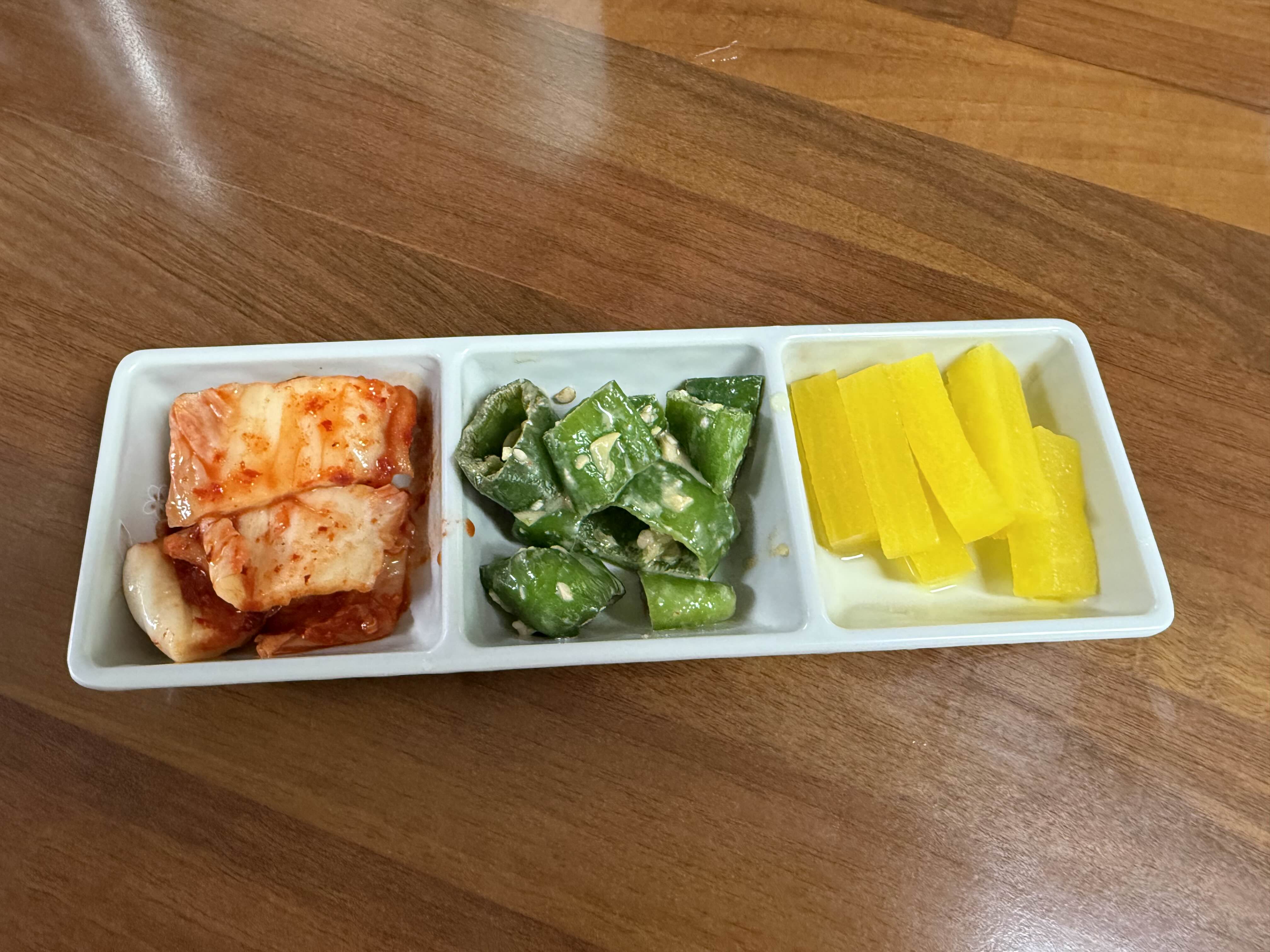 기본 반찬은 김치와 고추무침, 단무지.
